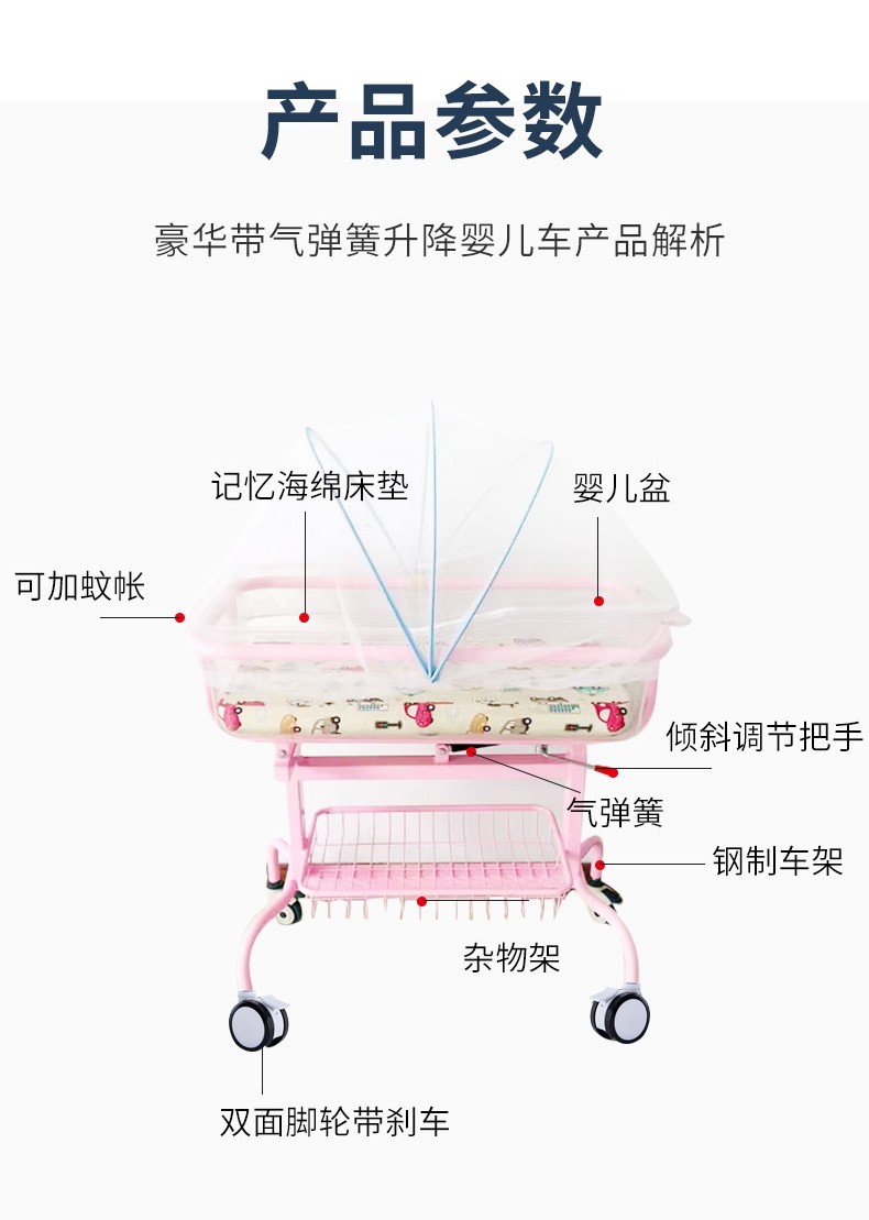 Belutos Confinement Center Club Crib Newborn Multifunctional Stainless Steel Removable Anti-spill Milk Baby Stroller Blue Model + Mattress Mosquito Net + Fully Transparent Basin