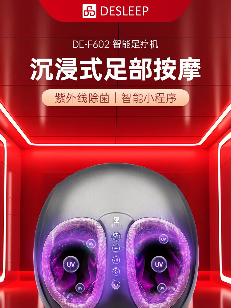 迪斯足疗机足底按摩器足部热敷加热暖脚保暖脚底部按摩仪自动穴位足疗仪神器送父母实用生日女礼物 升级智能款+9套模式+5挡力度+紫外线杀菌F602