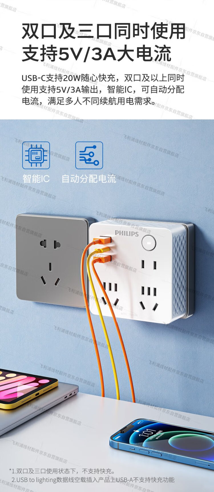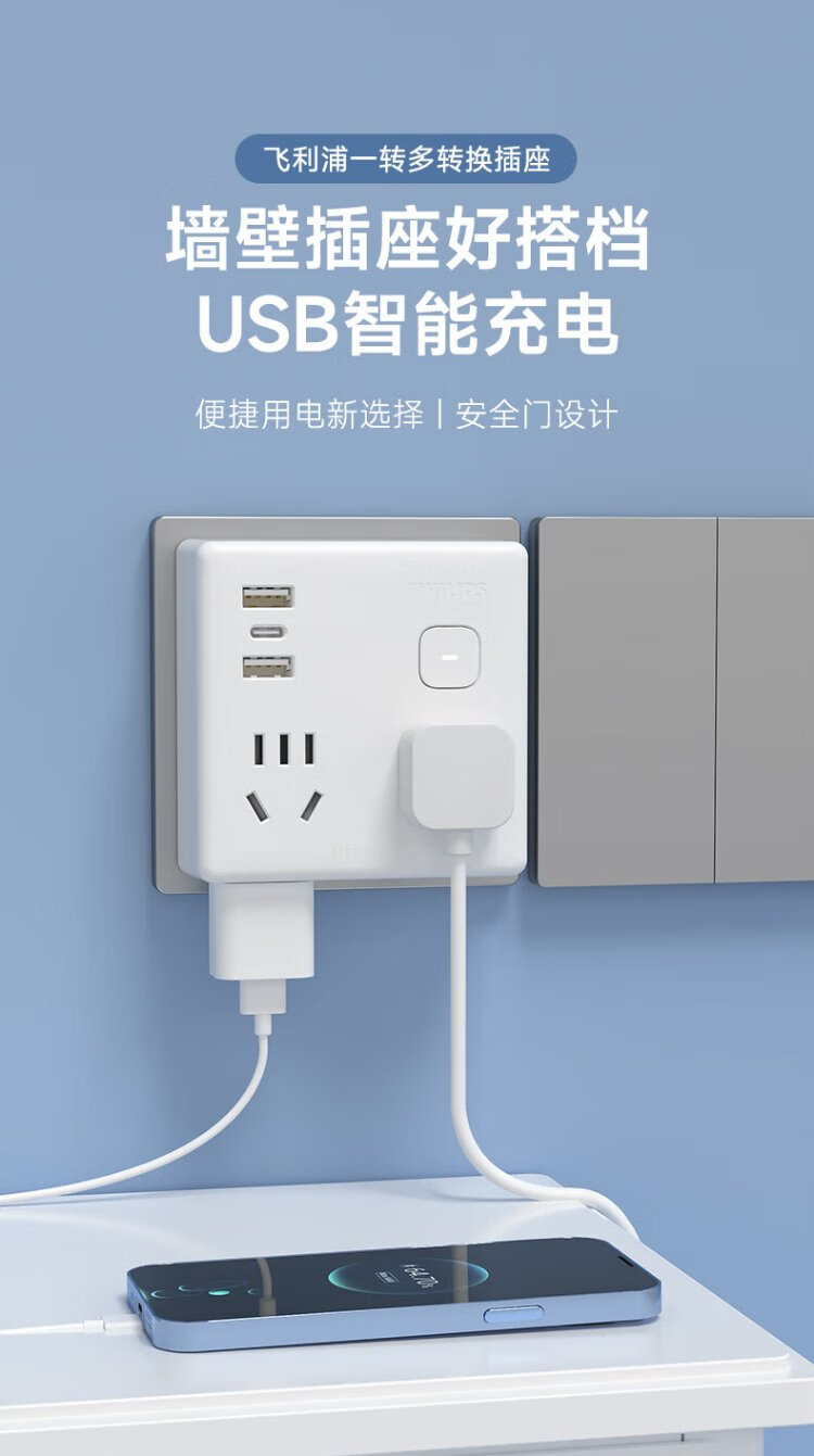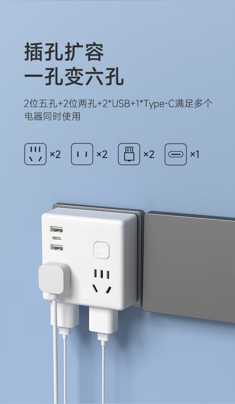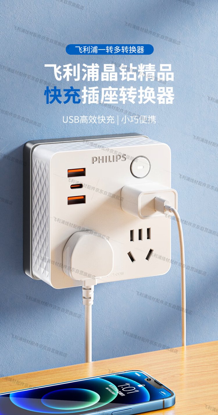 Philips (PHILIPS) Wall Desktop USB Rubik's Cube Socket Converter One-turn Multi-hole Power Conversion Plug Board Expansion Multi-purpose Wireless Interface Terminal Board Hot Sale Crystal Diamond 3 Jacks + 2A1C (Wireless)