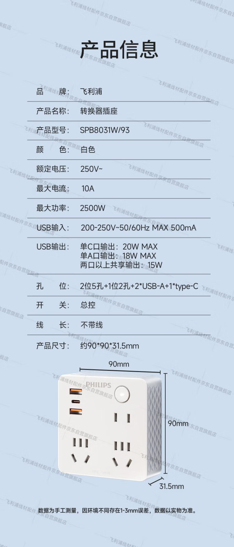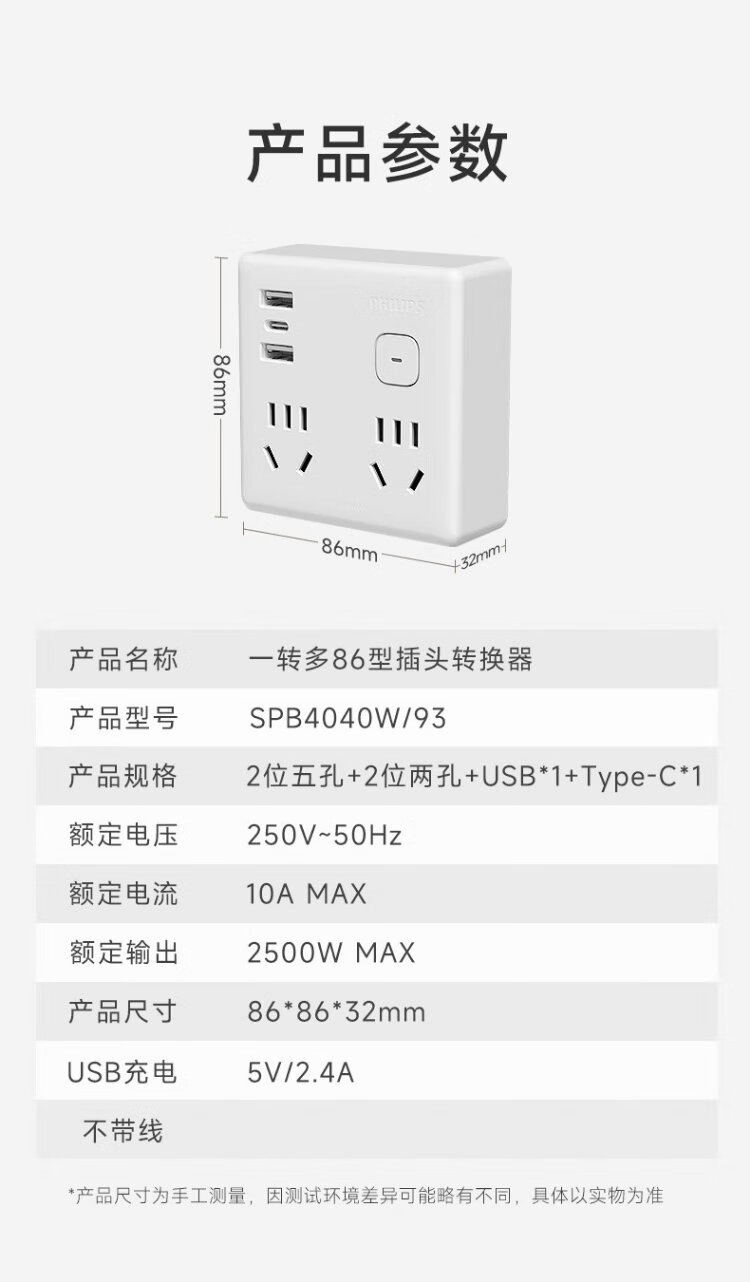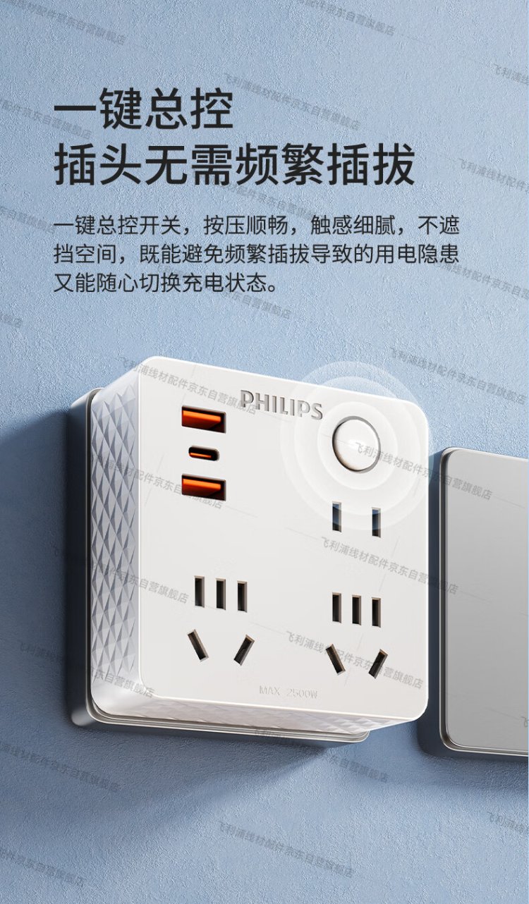 Philips (PHILIPS) Wall Desktop USB Rubik's Cube Socket Converter One-turn Multi-hole Power Conversion Plug Board Expansion Multi-purpose Wireless Interface Terminal Board Hot Sale Crystal Diamond 3 Jacks + 2A1C (Wireless)