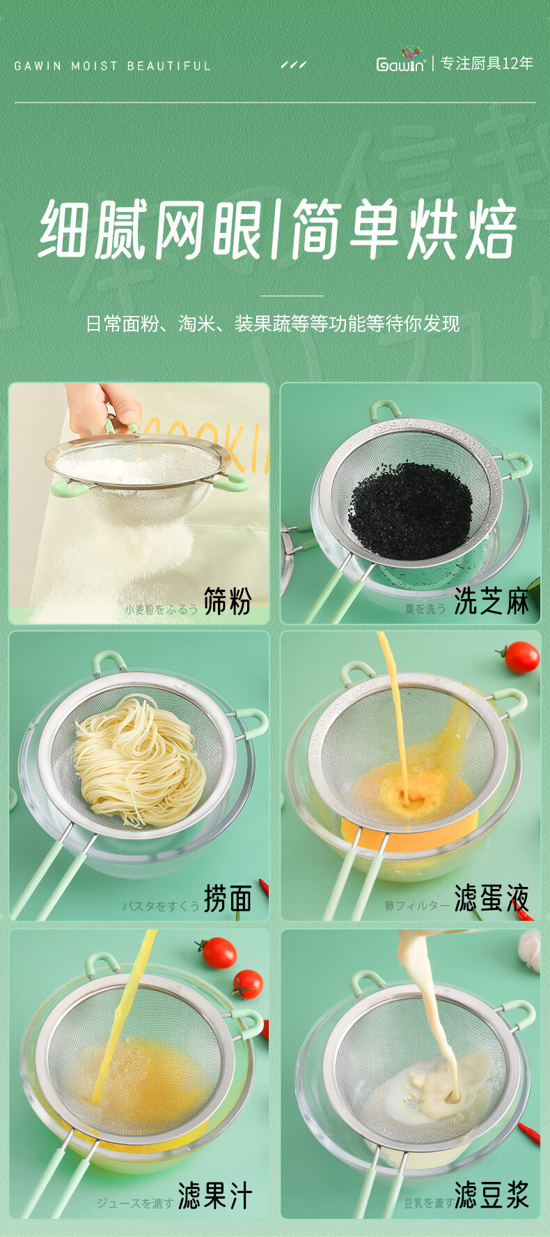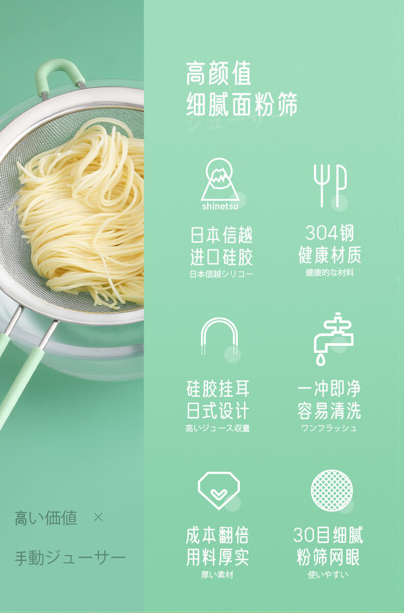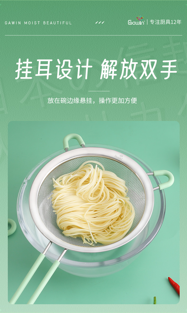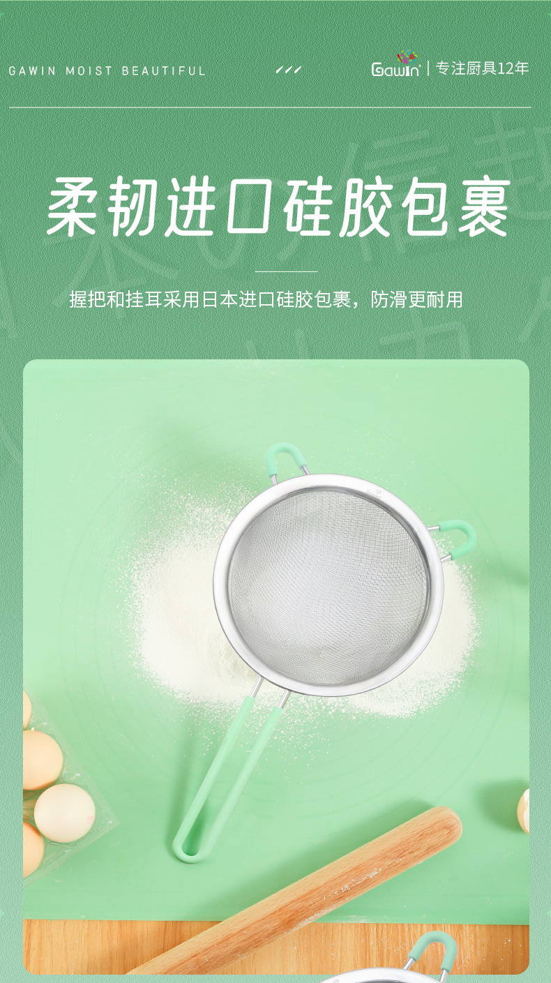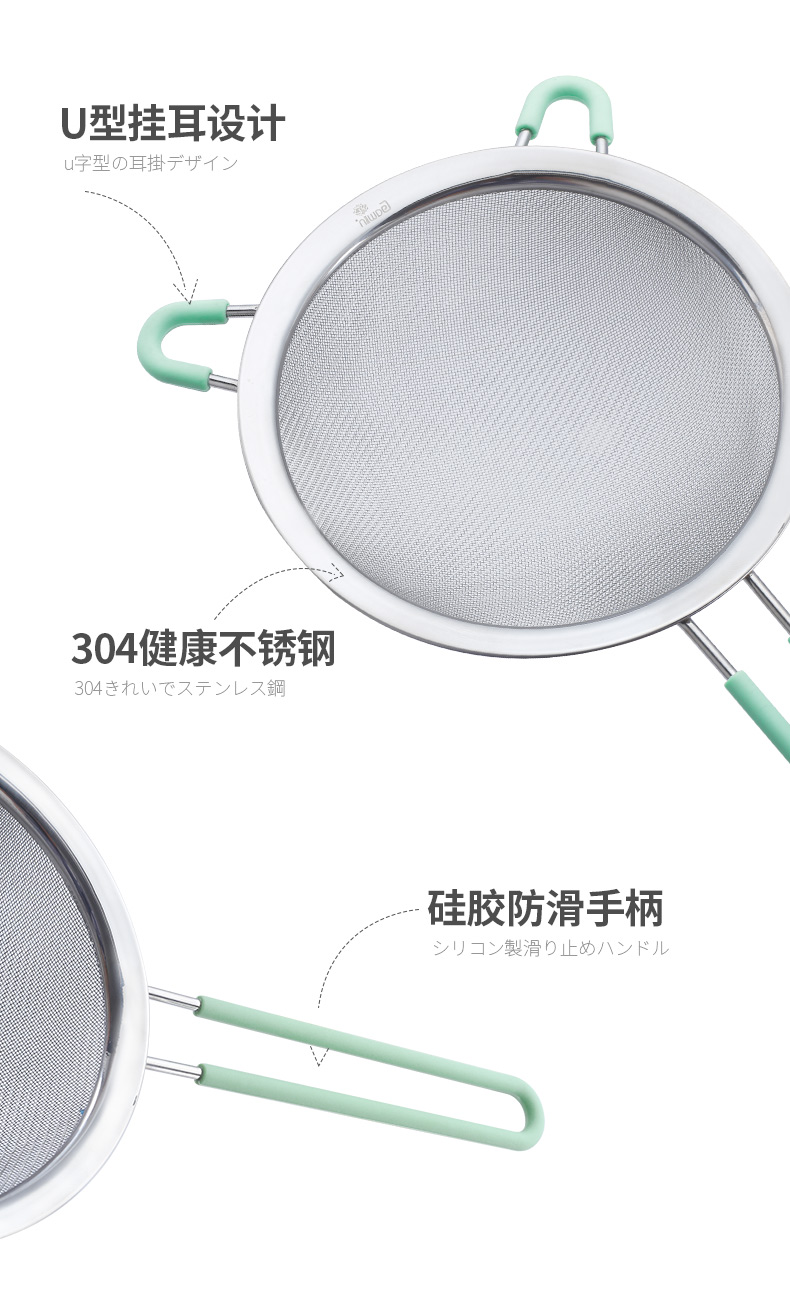 Galuingaluin 304 stainless steel mesh colander 15.5cm soy milk filter spoon frying mesh spoon flour sieve red large flour sieve