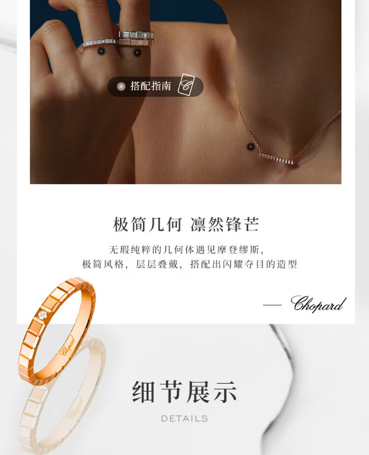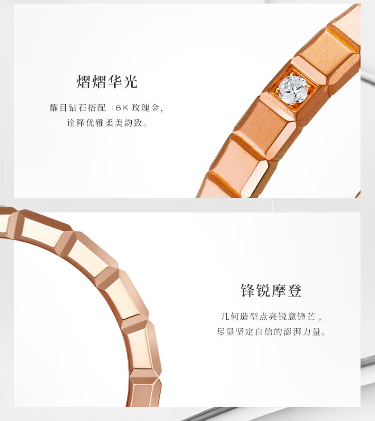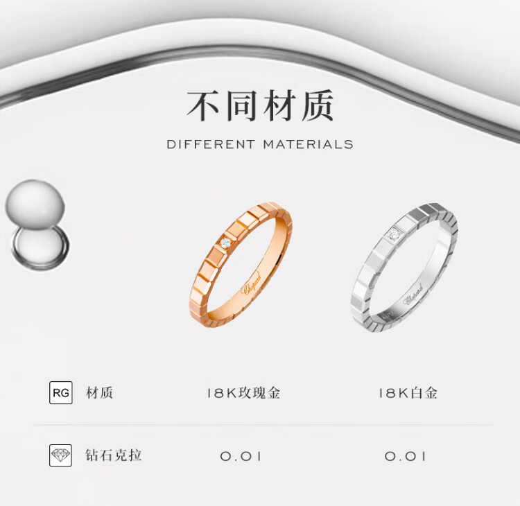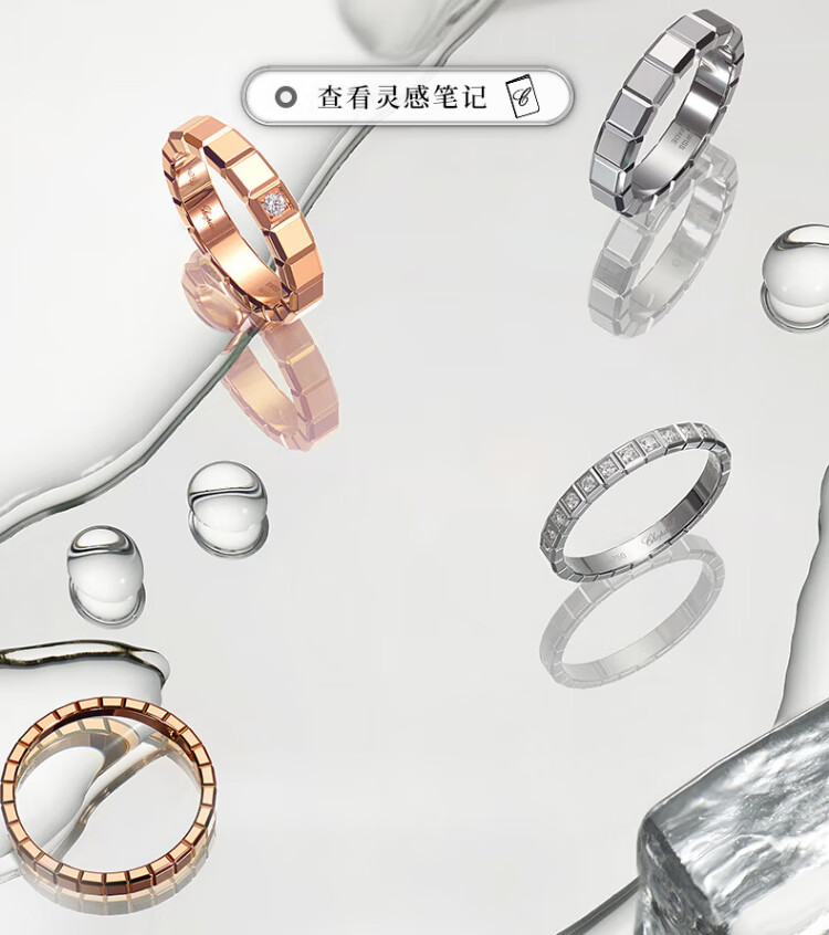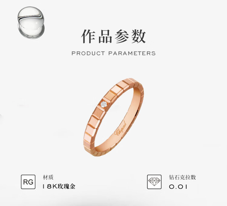 Chopard star's same style small ice cube narrow version ring for women 18K rose gold ring couple New Year's gift official authentic 18K rose gold single diamond 50