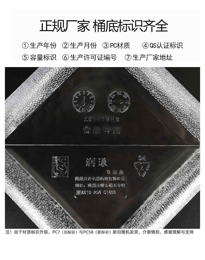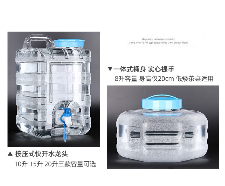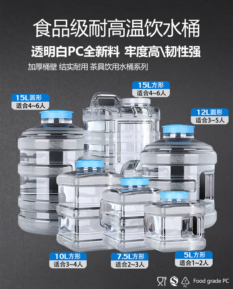 Runqian pure water bucket food grade PC mineral water bucket silicone tube tea set bucket large capacity household plastic outdoor portable 15 liters vertical style with faucet + silicone tube + brush