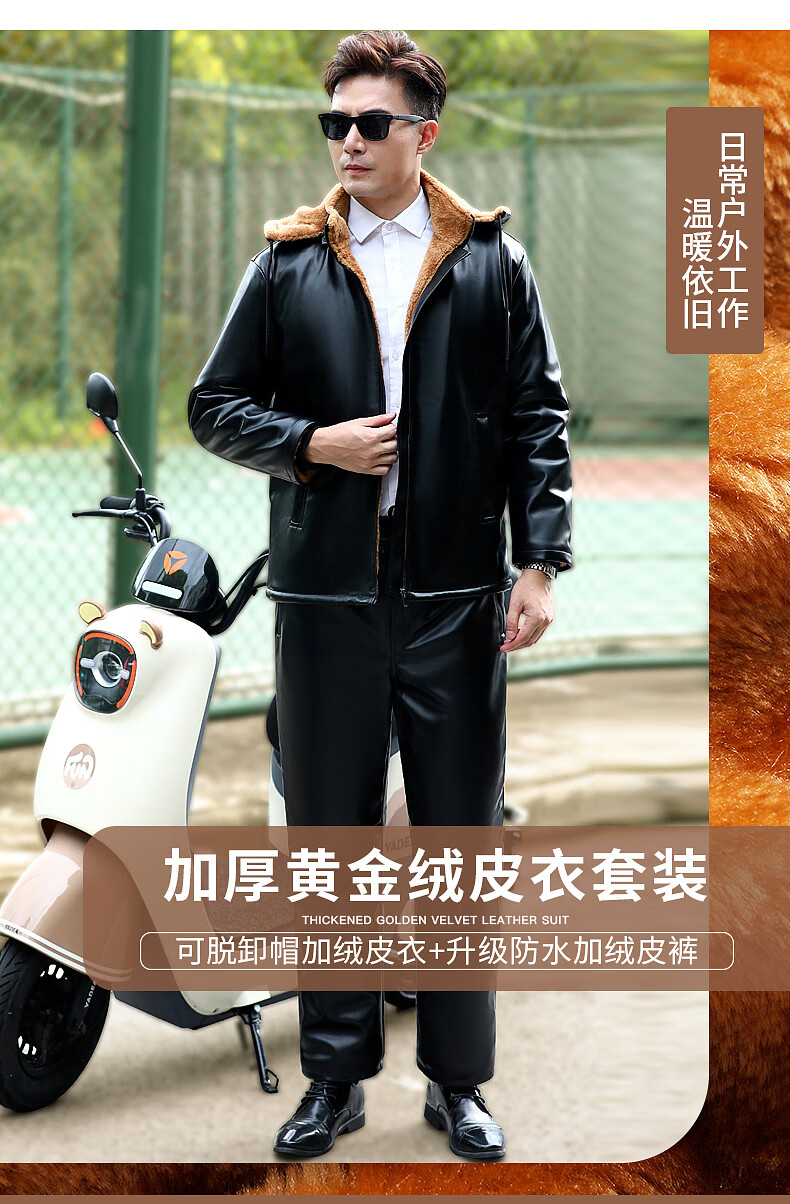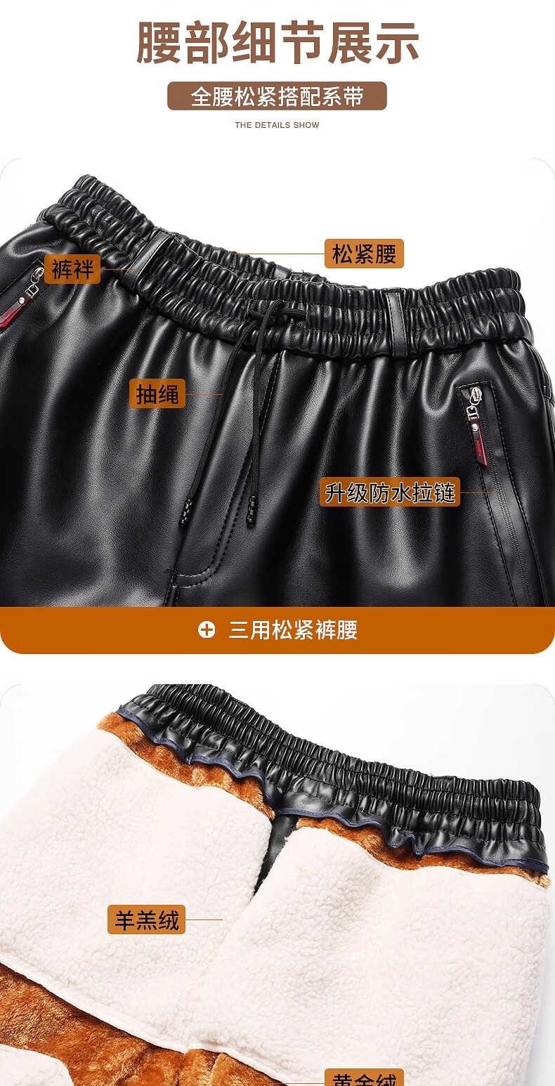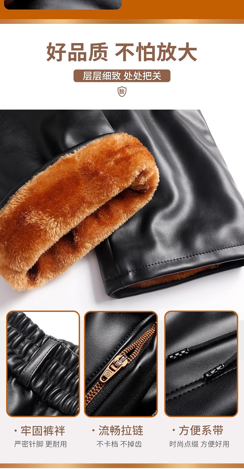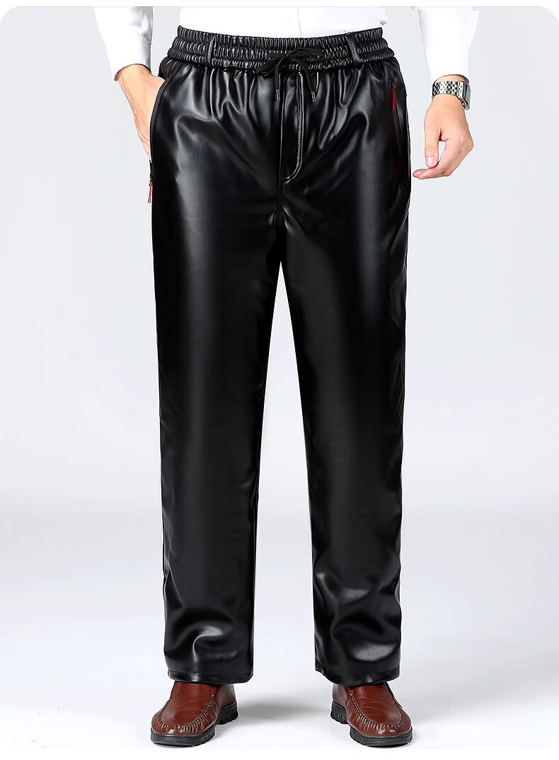 Woodpecker middle-aged leather pants men's velvet thickened loose large size windproof and waterproof motorcycle riding takeaway dad leather cotton pants 166 black leather pants 5XL