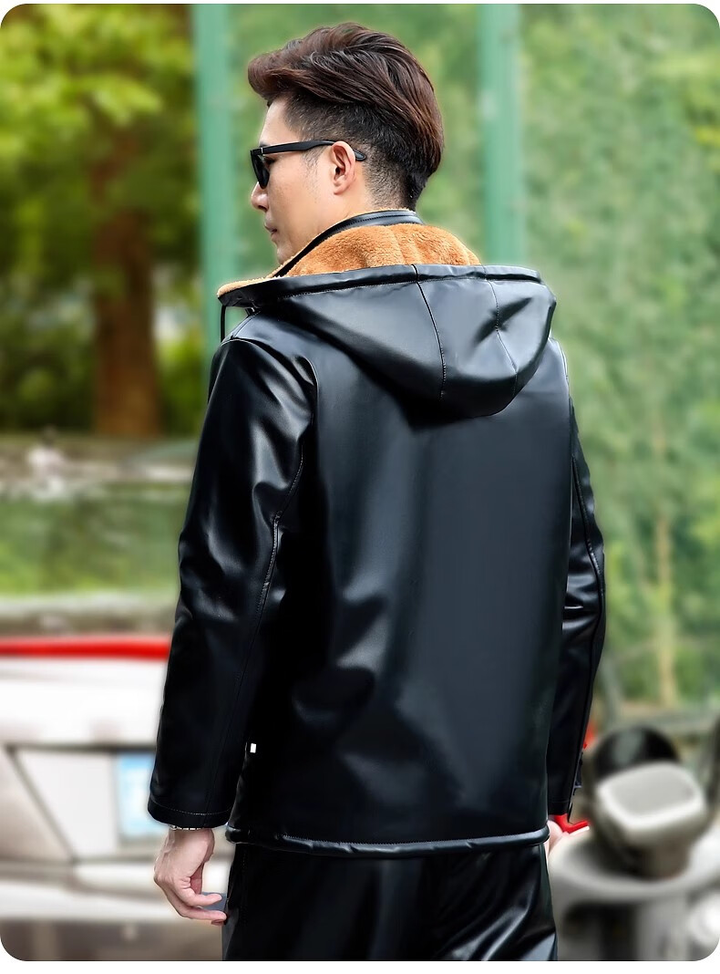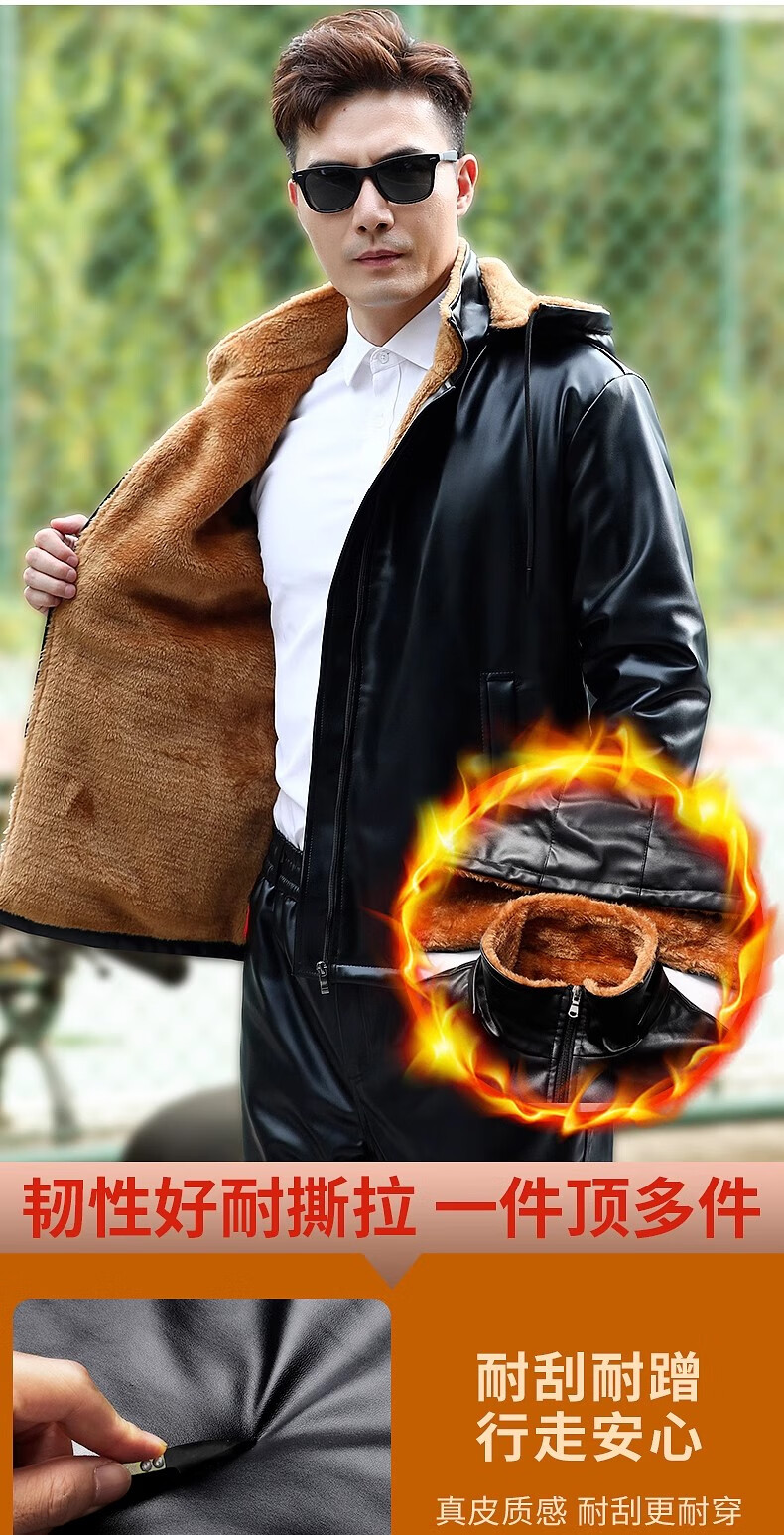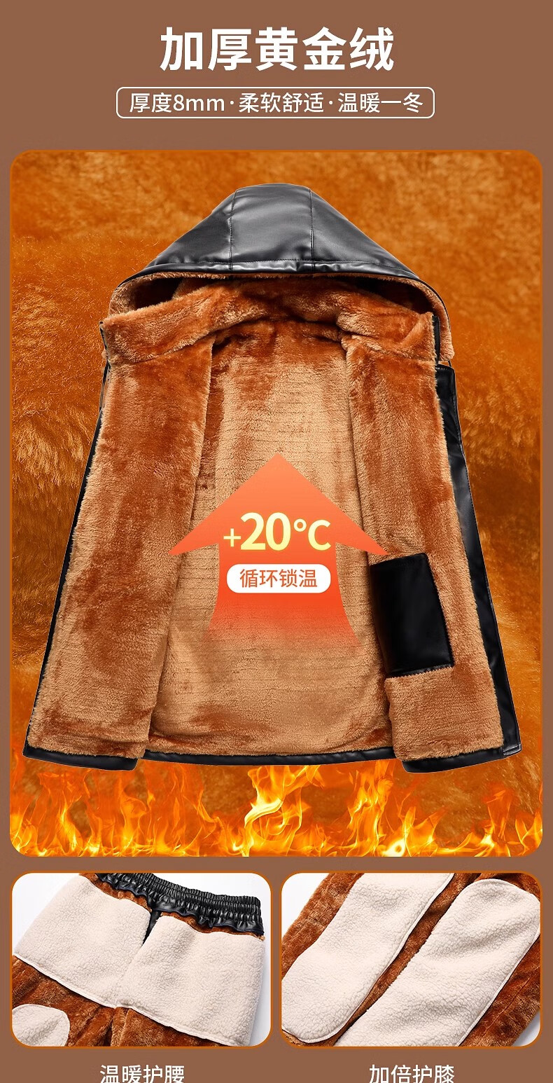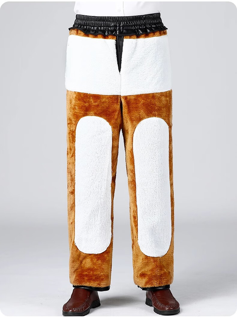 Woodpecker middle-aged leather pants men's velvet thickened loose large size windproof and waterproof motorcycle riding takeaway dad leather cotton pants 166 black leather pants 5XL