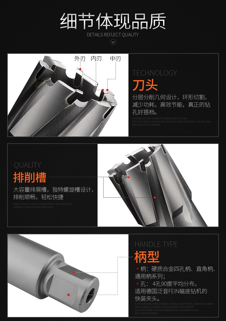 Chuangheng carbide universal shank hollow drill bit 50mm depth/steel plate drill/core drill/drill bit/hole opener/nesting drill/magnetic drill bit universal shank 25*50