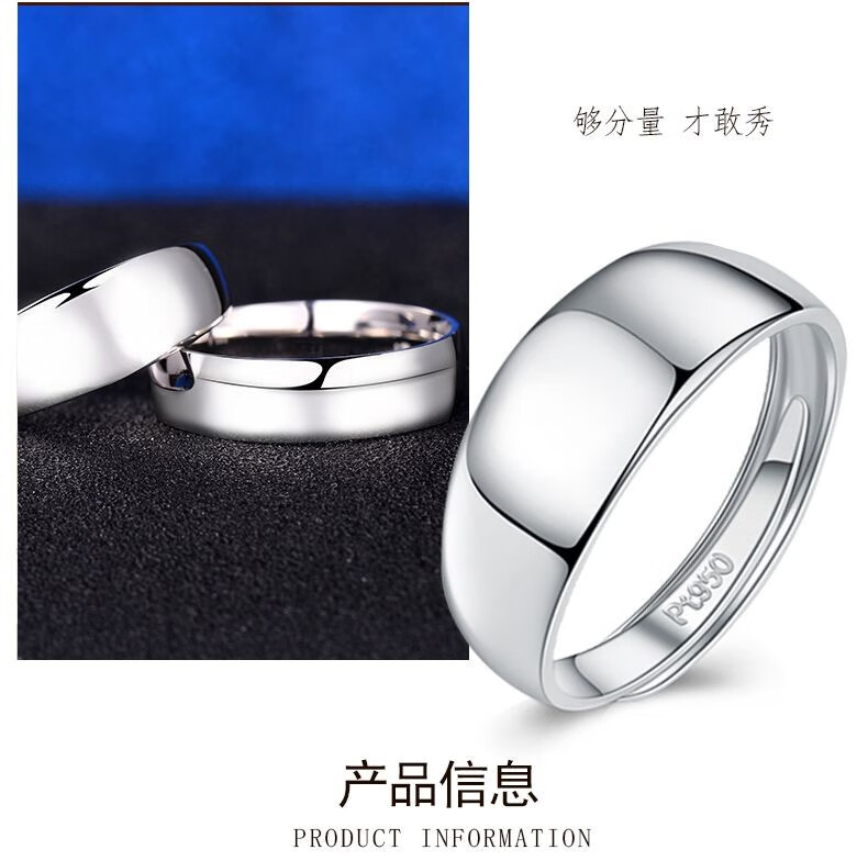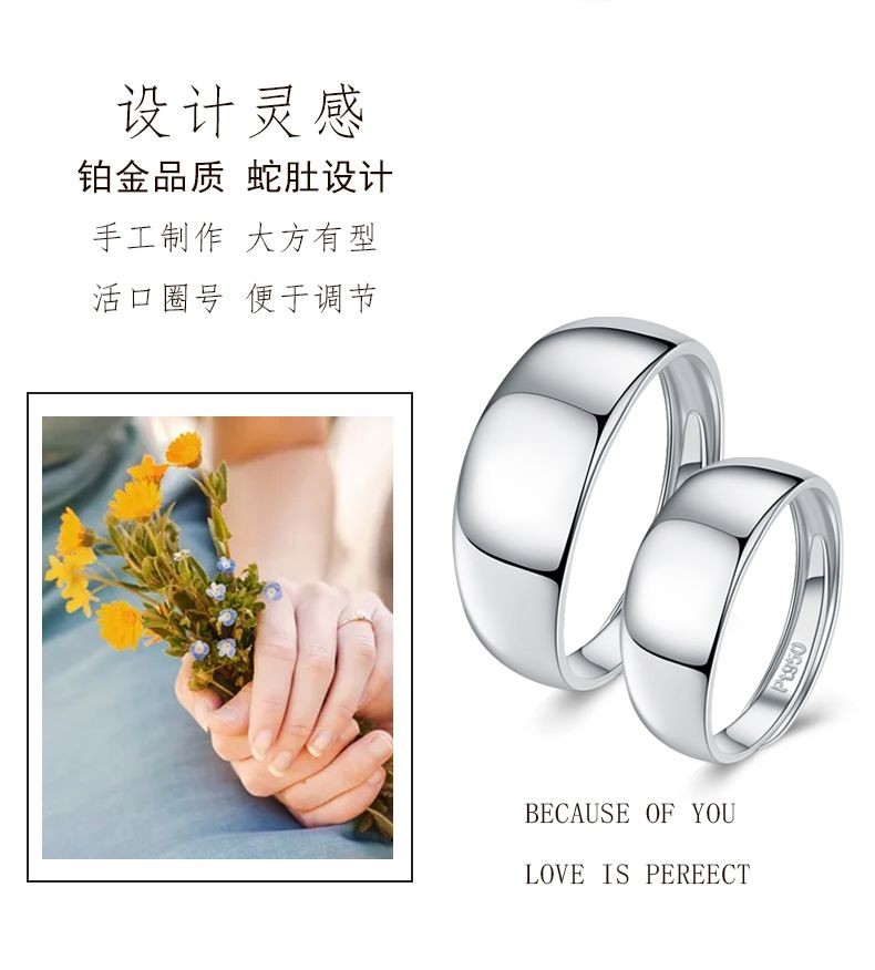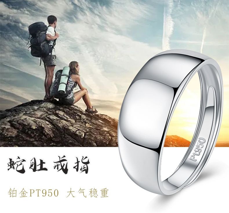 QinDefu platinum ring Pt950 snake belly smooth men's ring women's ring live mouth platinum wide face plain gold open adjustable ring live mouth adjustable - about 6.5 grams (customized)