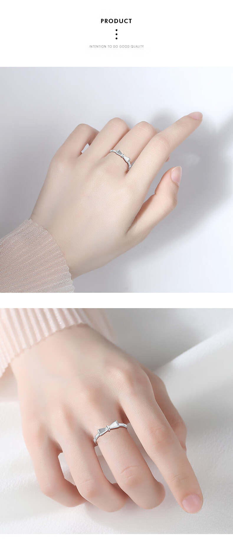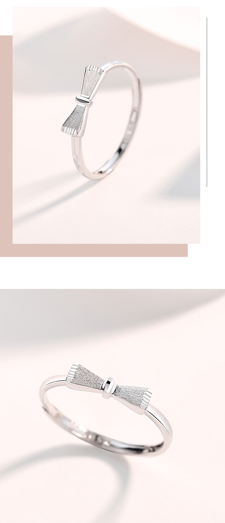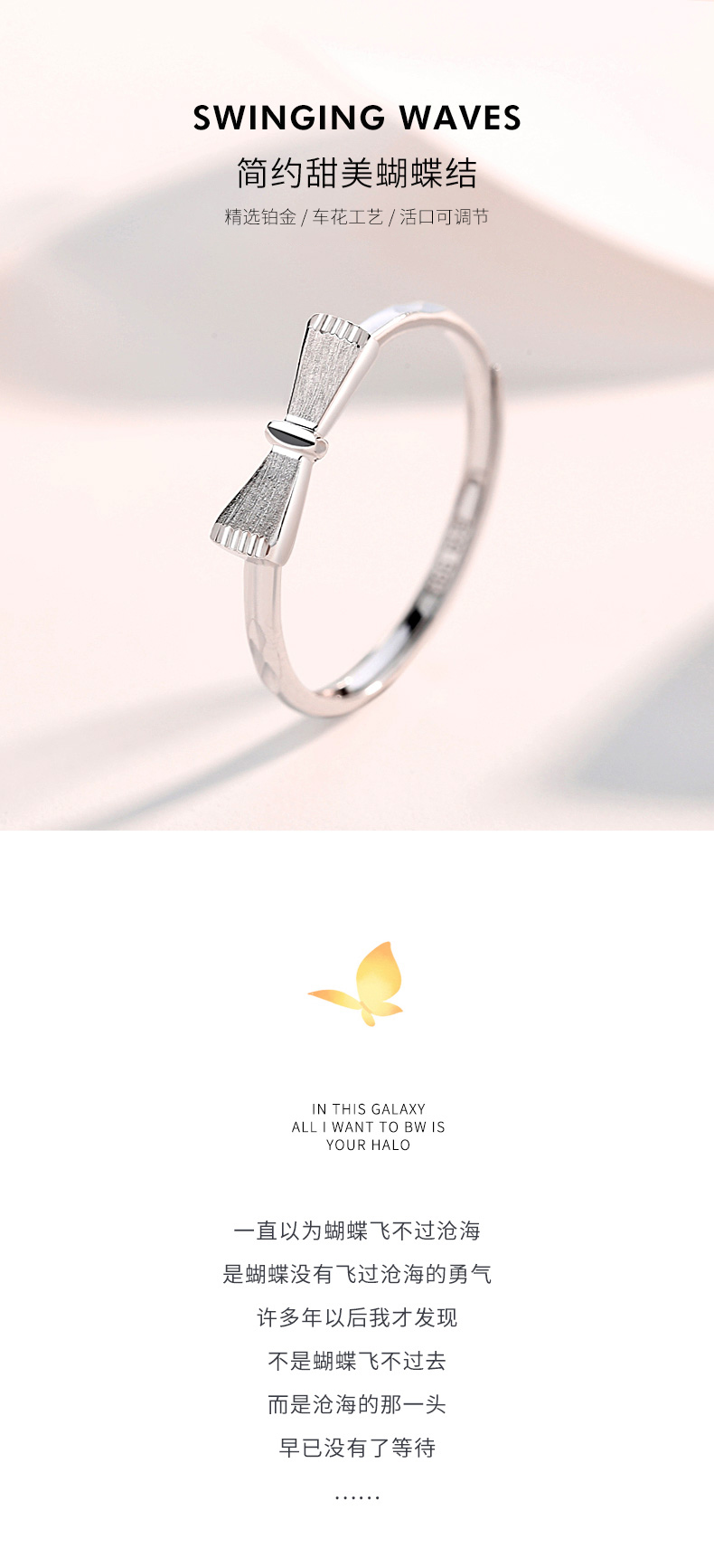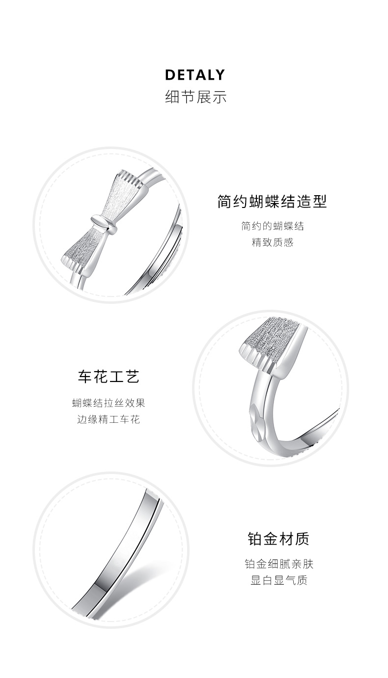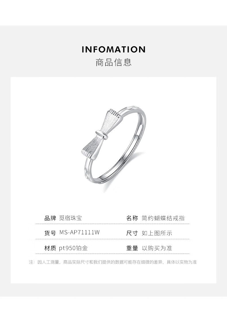 Misu platinum ring for women PT950 platinum bow live ring birthday gift for girlfriend, weight 1.8-2.0 grams + free engraving