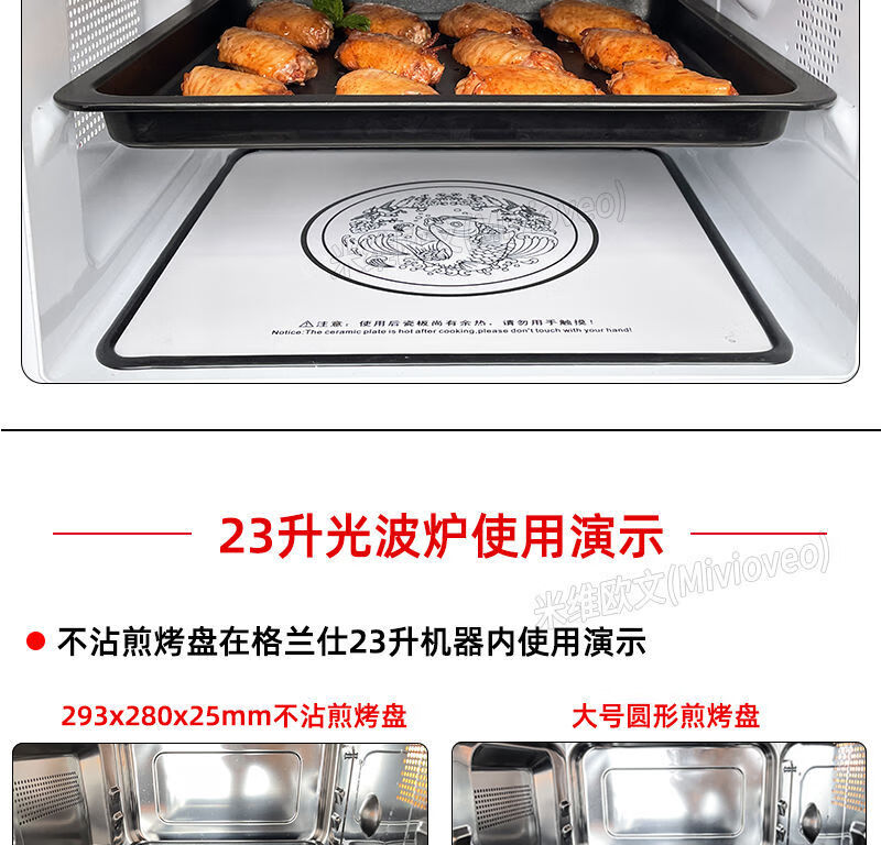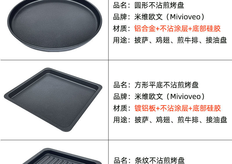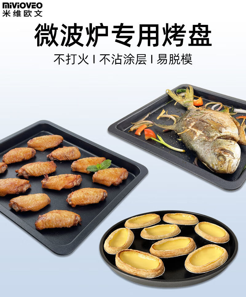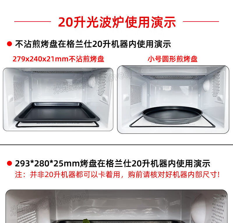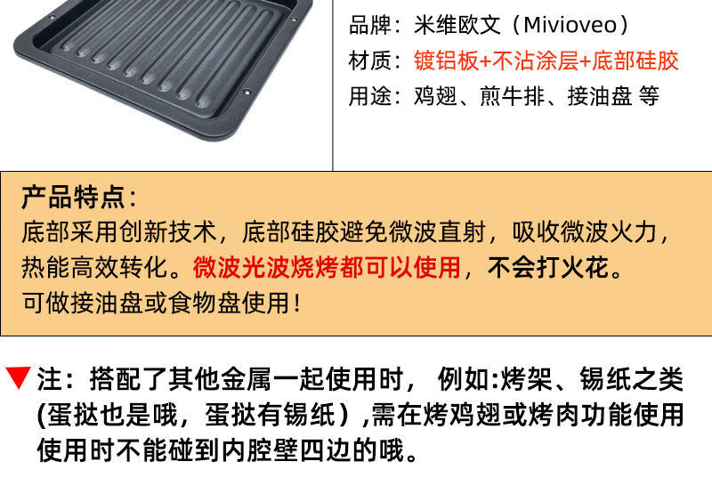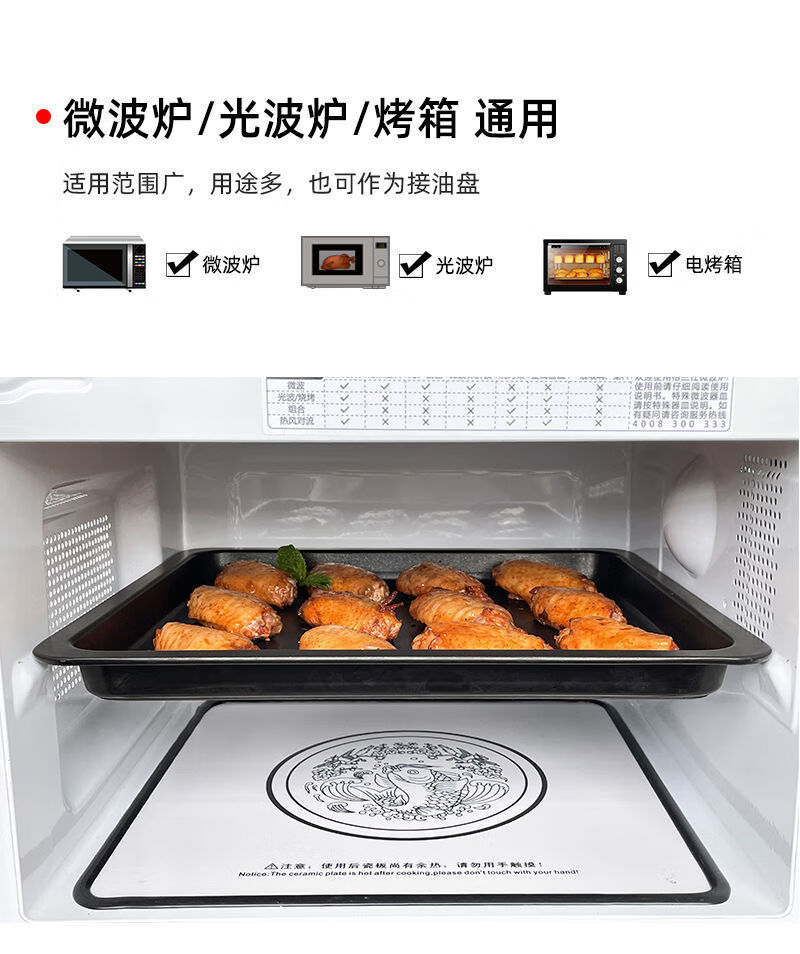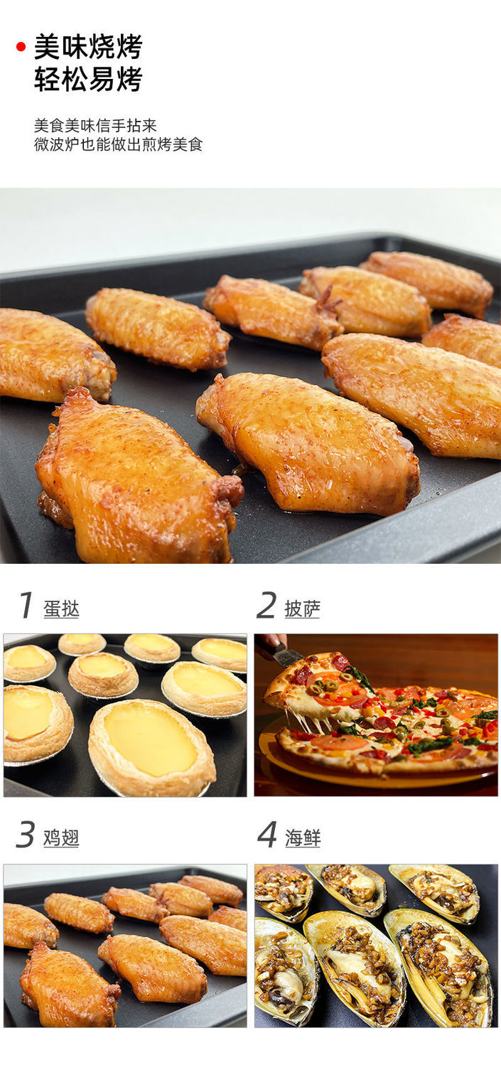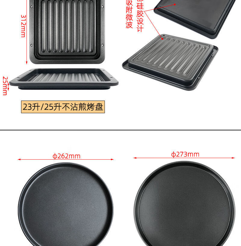 Muwei microwave light wave oven universal baking pan suitable for steam oven all-in-one non-stick oil pan 20L flat bottom non-stick baking pan + small square grid - with gloves