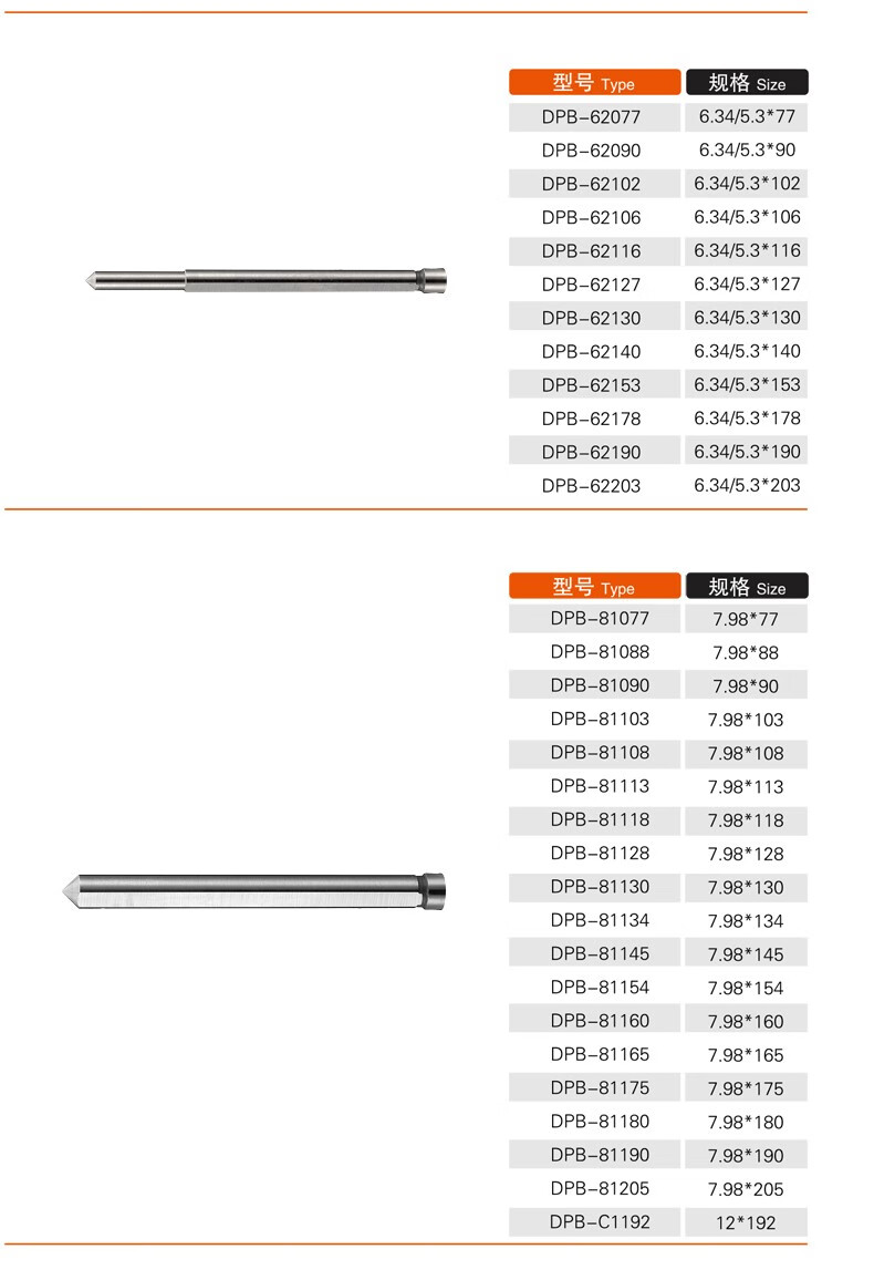 Chuangheng CHTOOLS ejector pin/positioning pin/ejector rod/center rod/center needle/steel plate drill attachment/7.98*106 with 50mm depth of cut drill bit