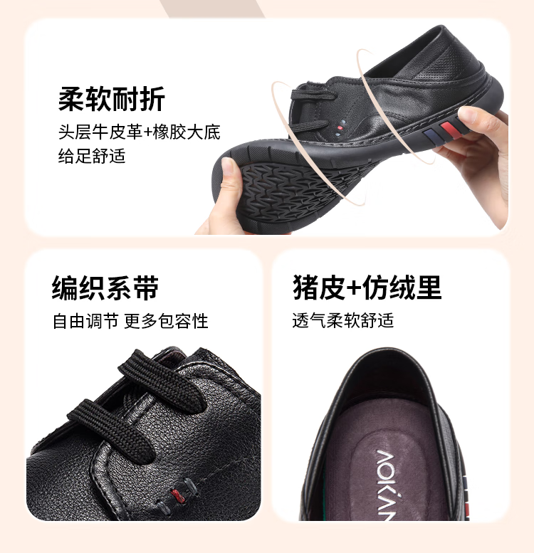 Aokang official men's shoes men's versatile business casual leather shoes fashionable genuine leather comfortable soft sole men's single shoes work shoes black 1253214046B 40 250mm