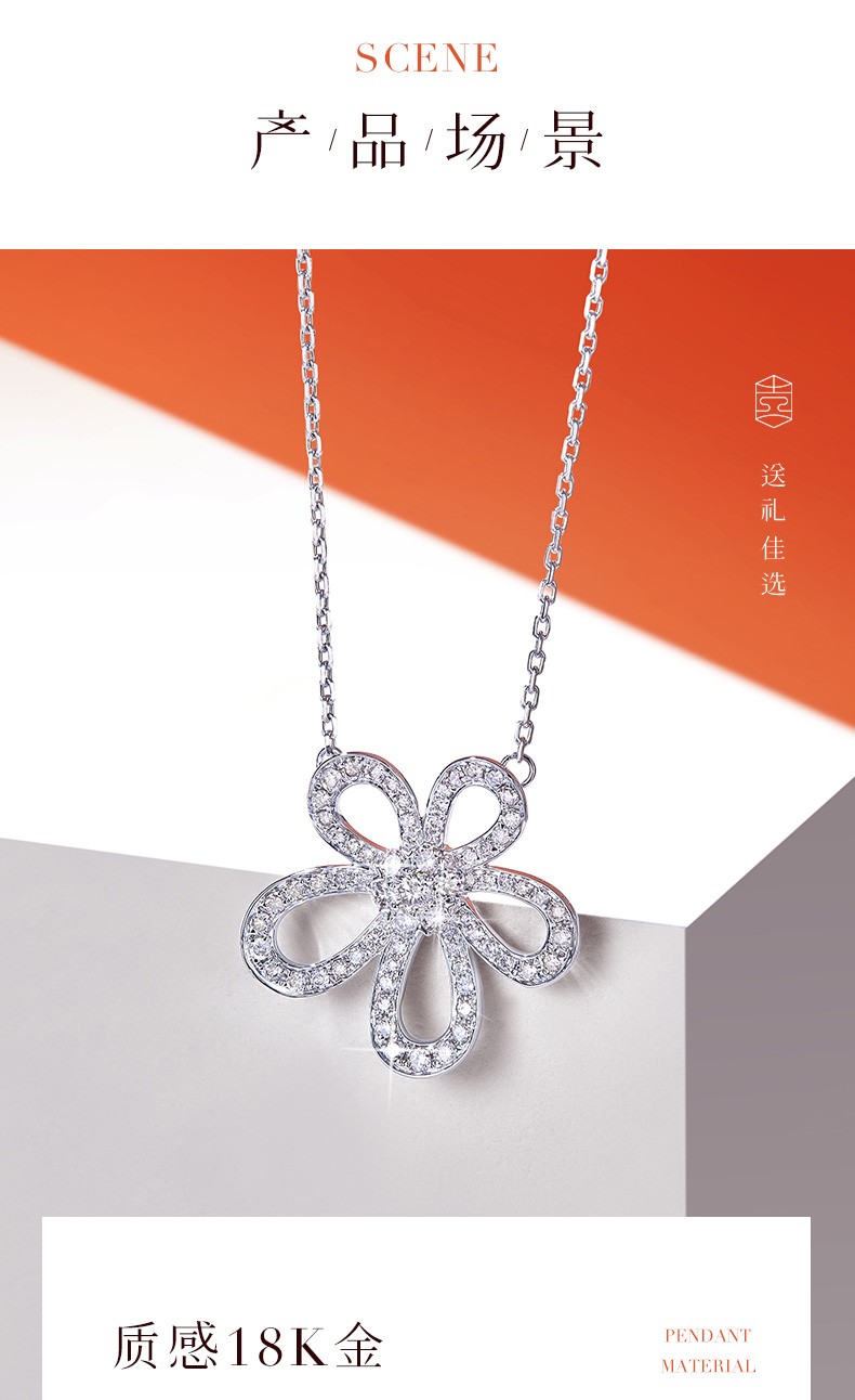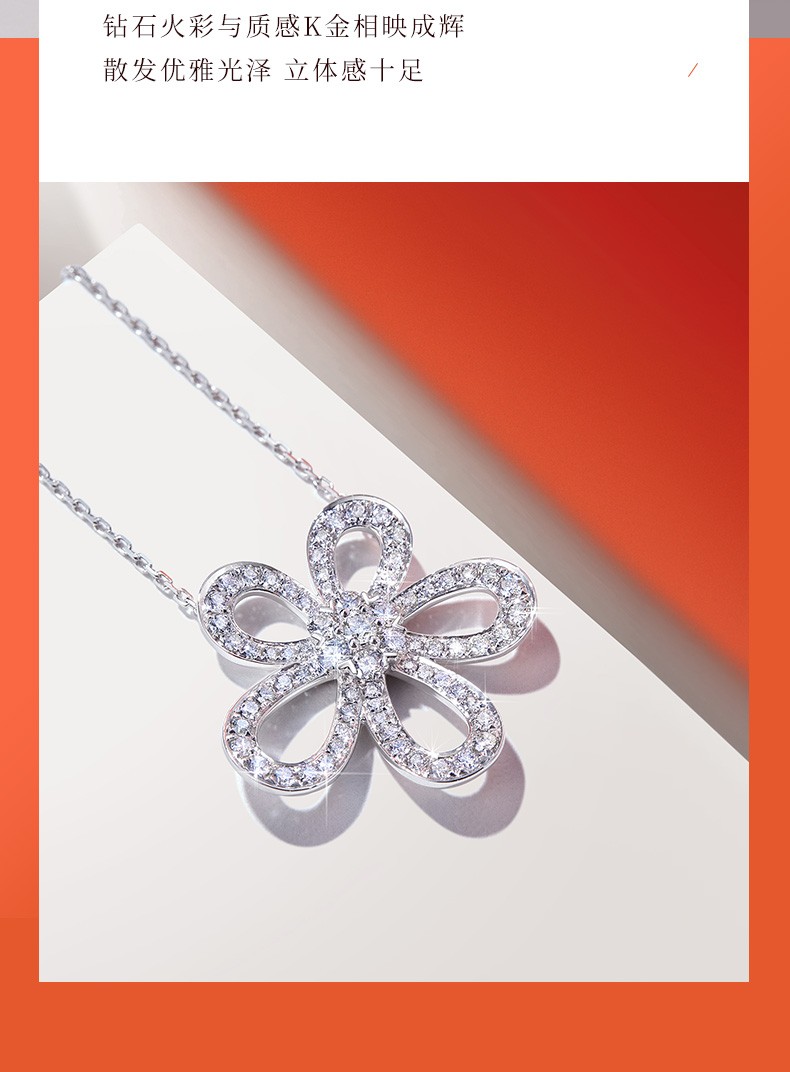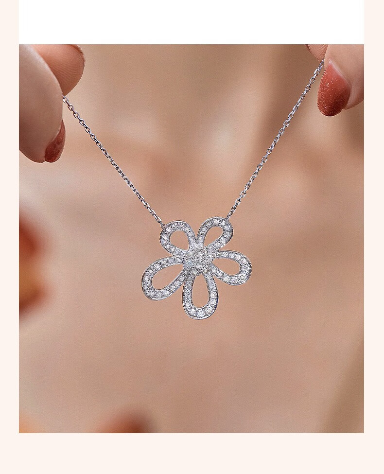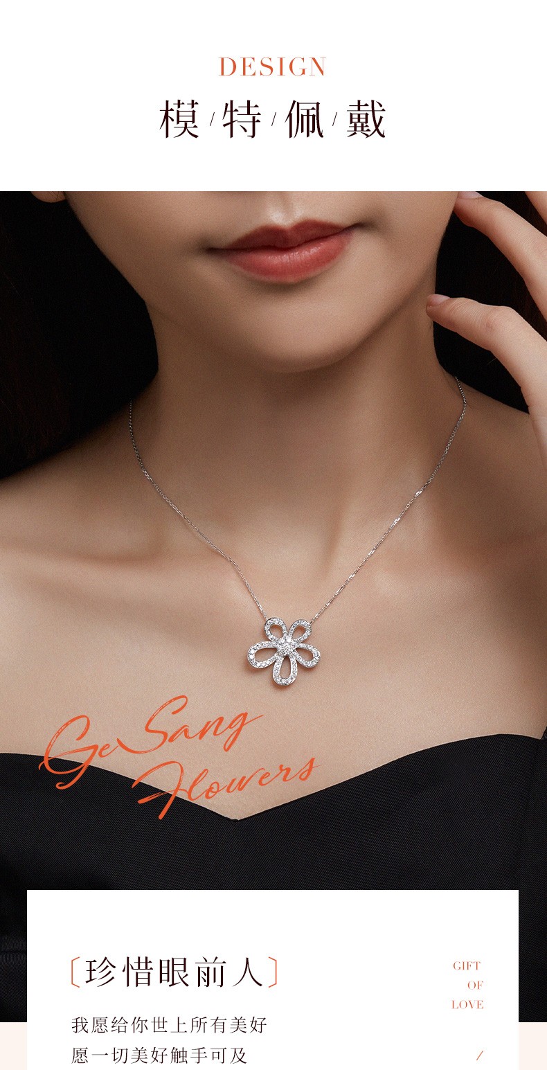 Happy diamond 18K gold diamond pendant for women, Gesang flower diamond necklace, clavicle chain, Valentine's Day gift for girlfriend, ready stock - 18K white gold, total 1 carat