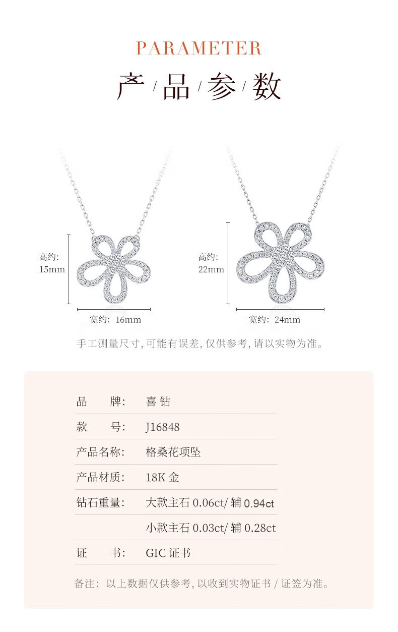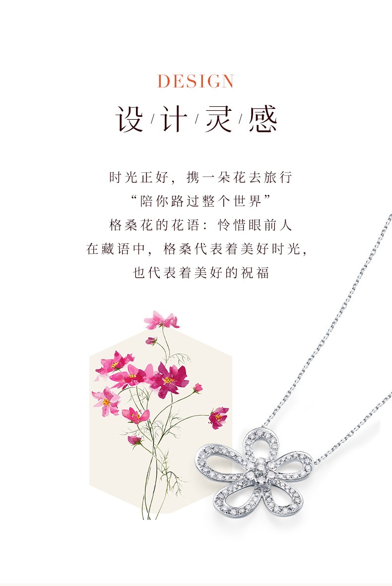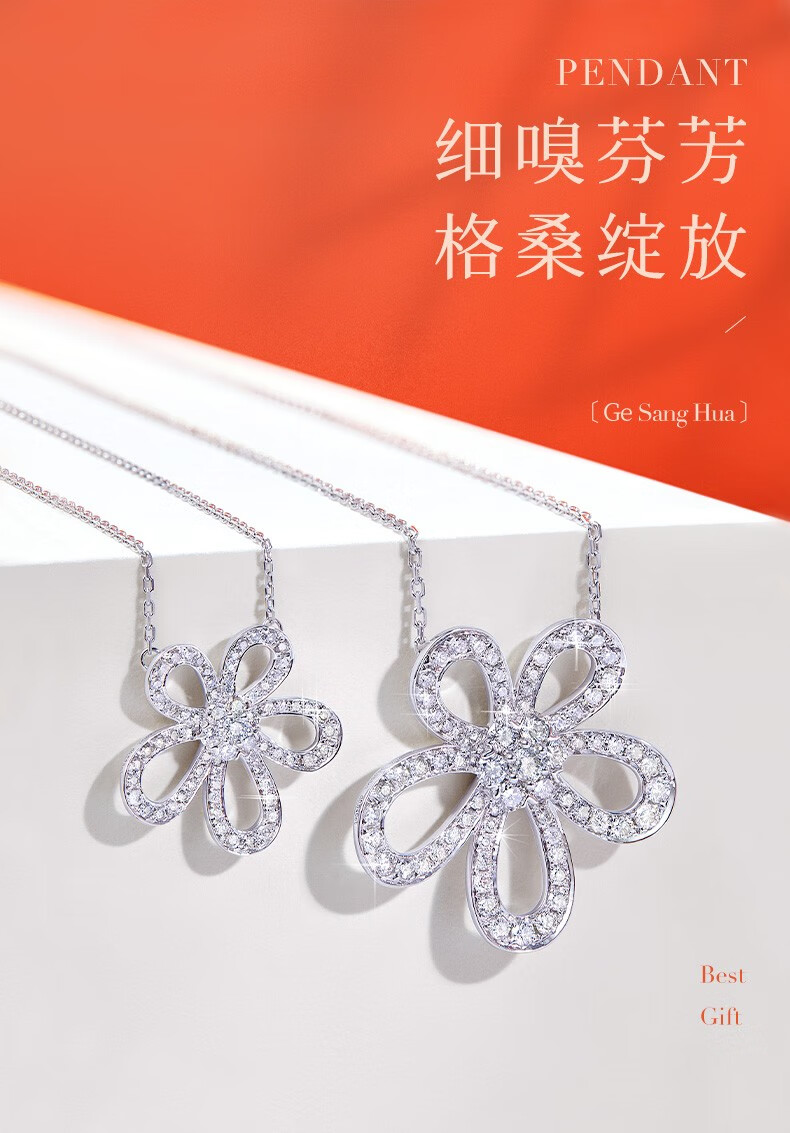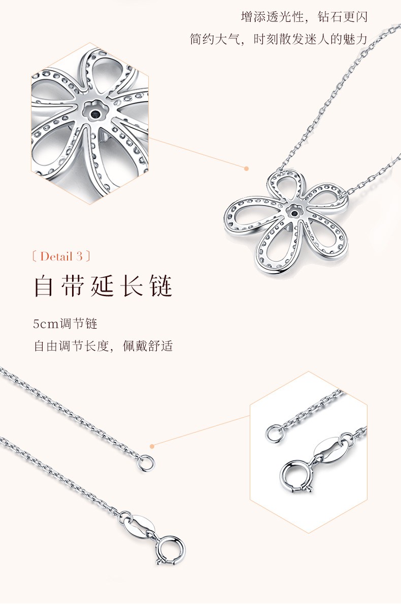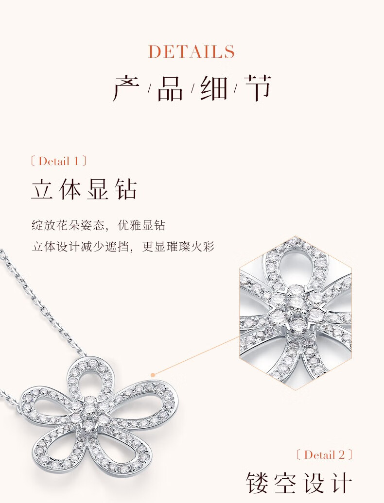 Happy diamond 18K gold diamond pendant for women, Gesang flower diamond necklace, clavicle chain, Valentine's Day gift for girlfriend, ready stock - 18K white gold, total 1 carat