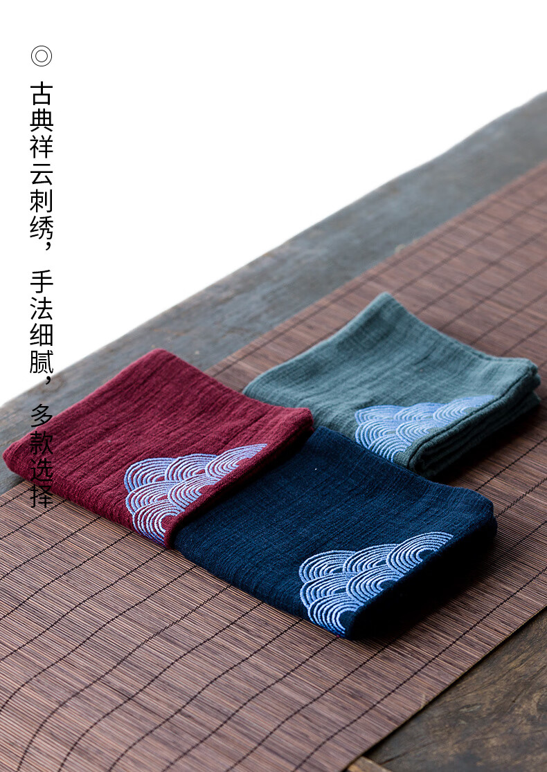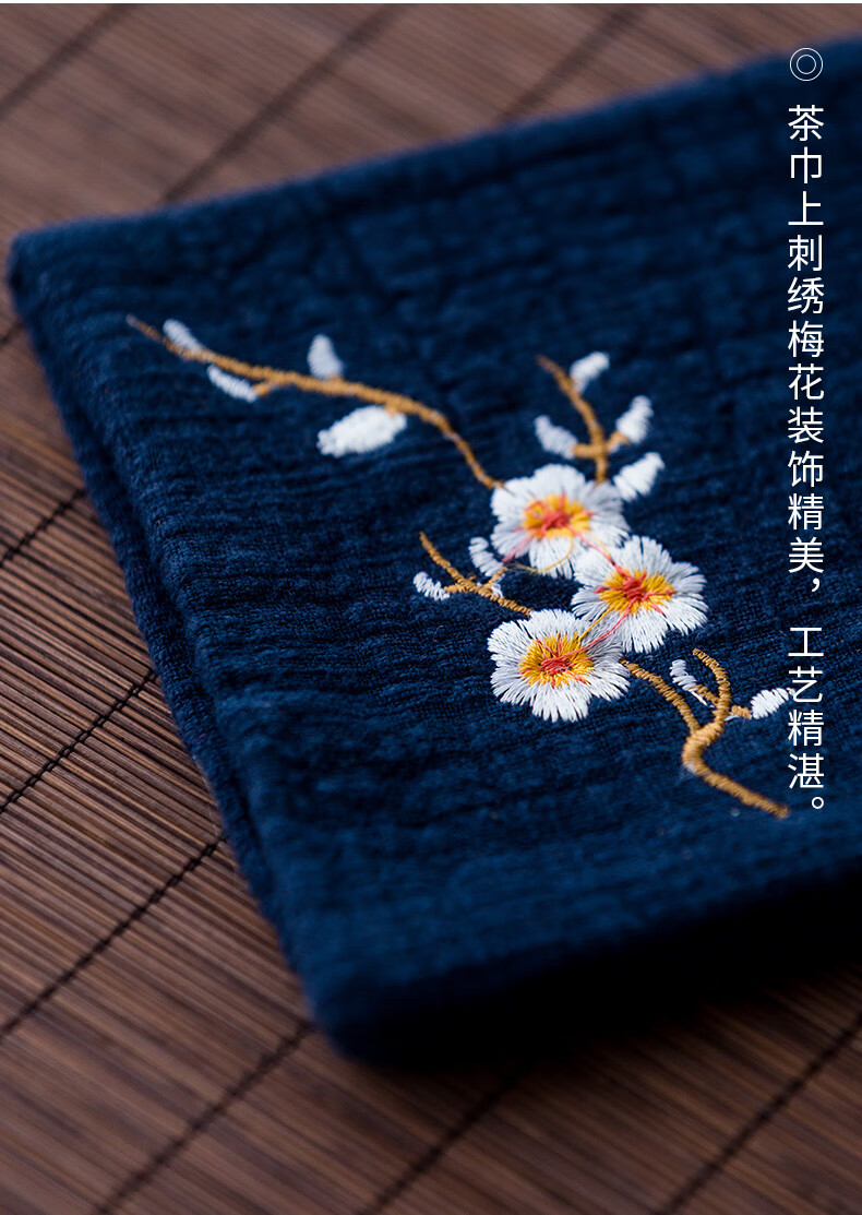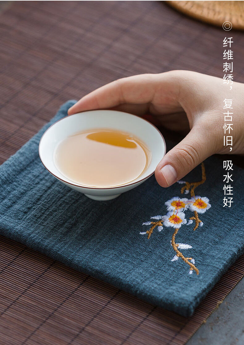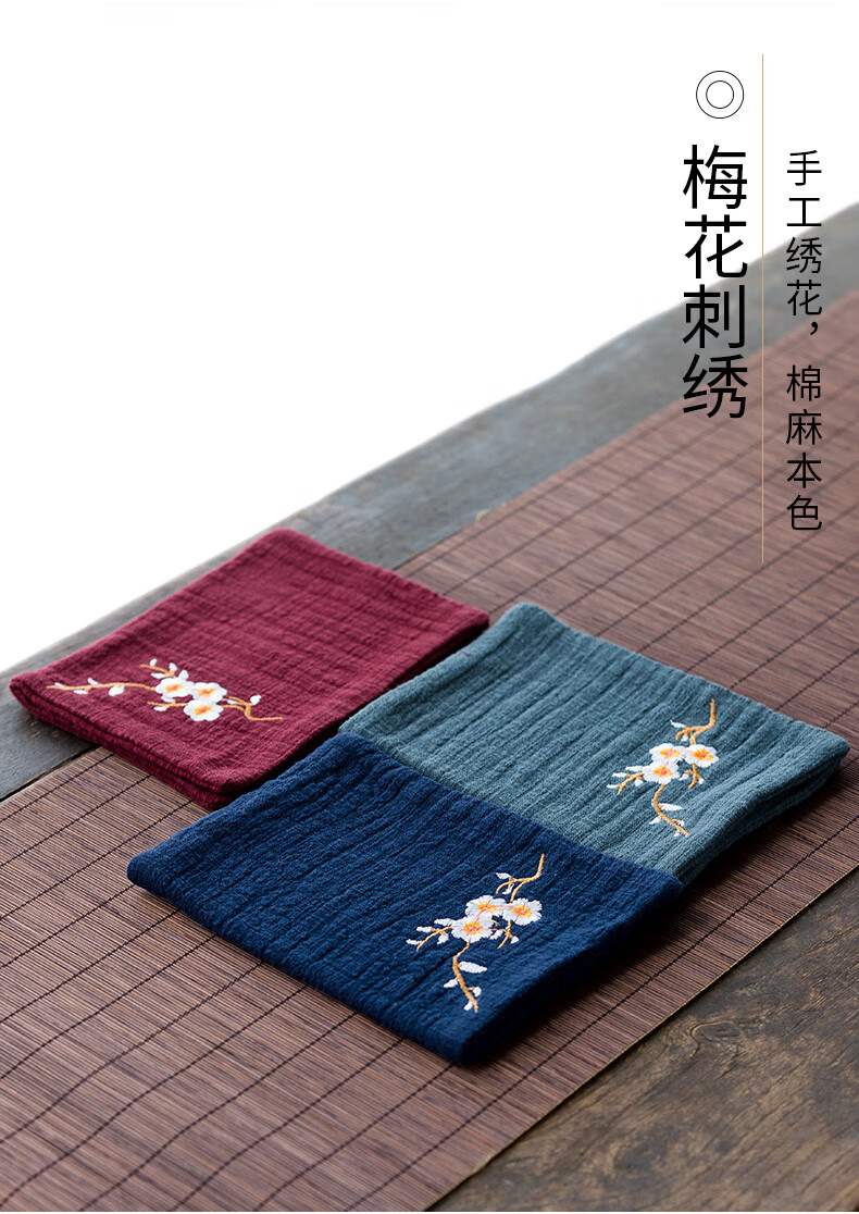 Xiangye thickened cotton and linen absorbent tea towel, retro Chinese style fabric tea table rag, Chinese embroidery large tea cloth Kung Fu embroidered red plum tea towel three packs