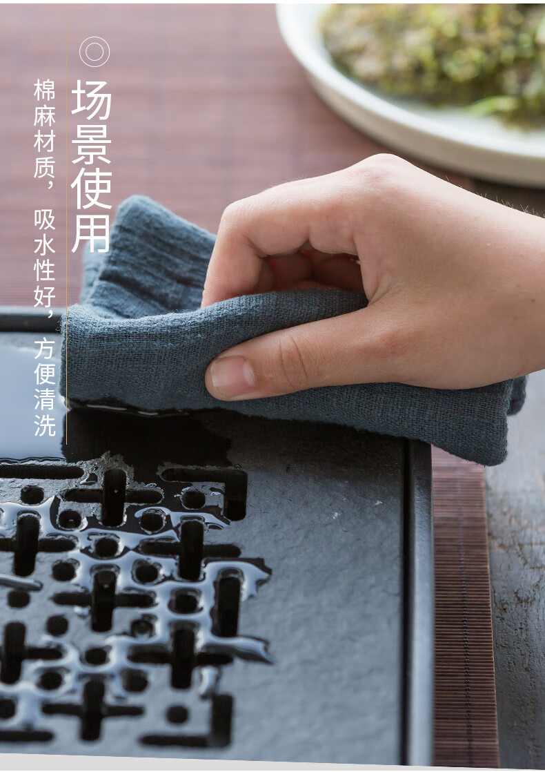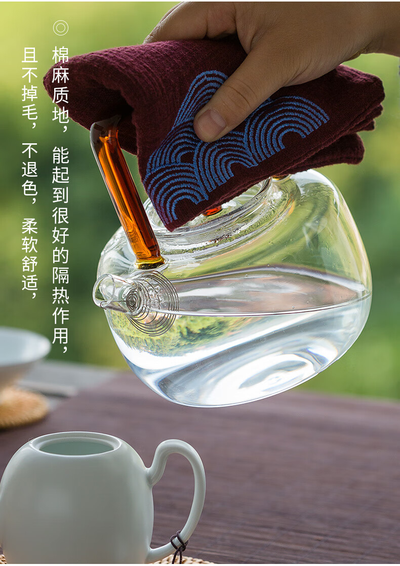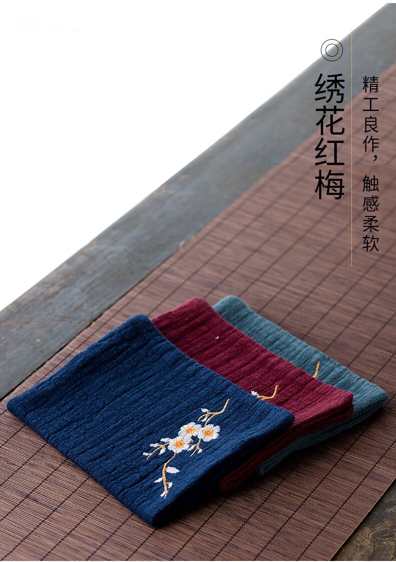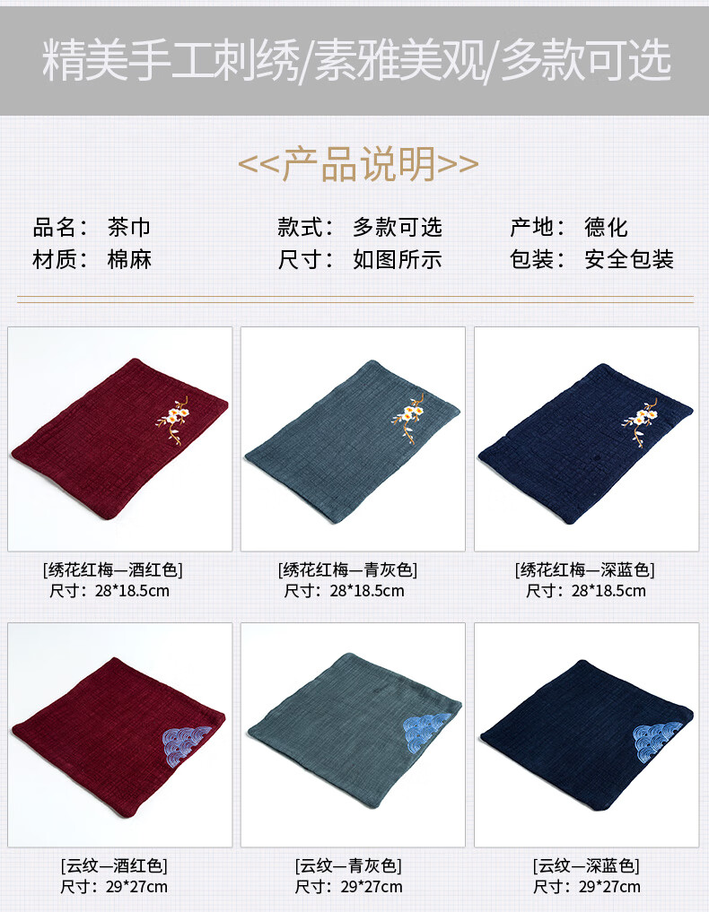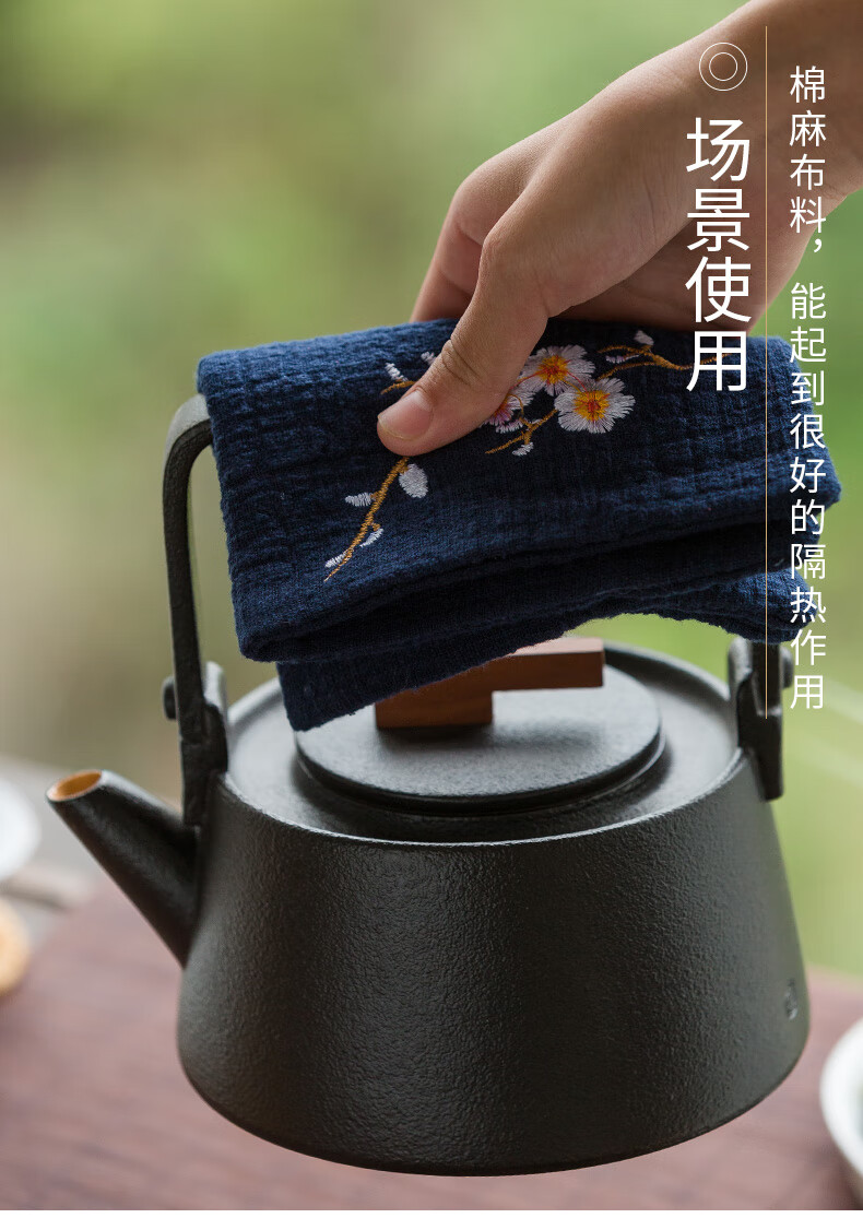 Xiangye thickened cotton and linen absorbent tea towel, retro Chinese style fabric tea table rag, Chinese embroidery large tea cloth Kung Fu embroidered red plum tea towel three packs