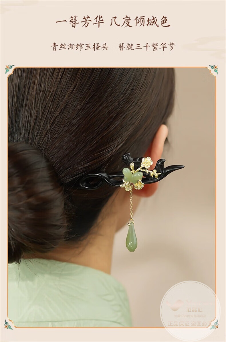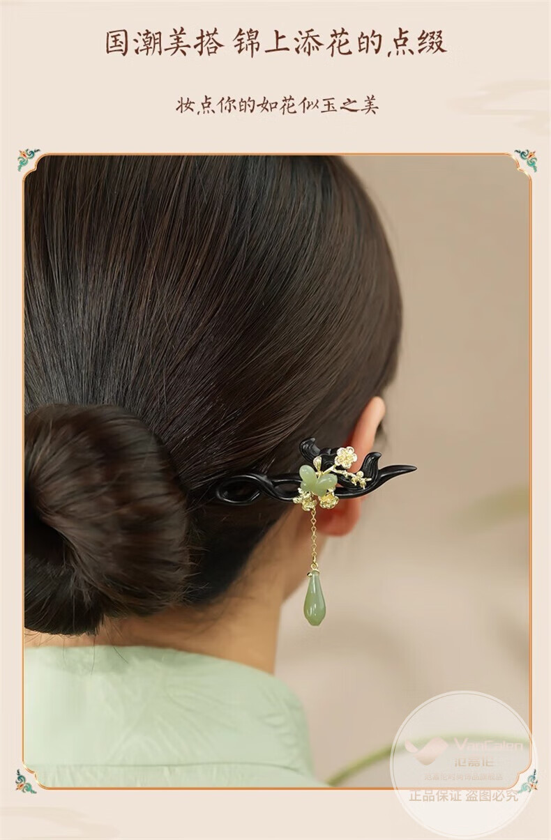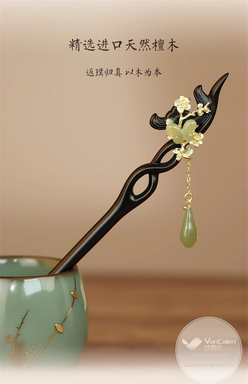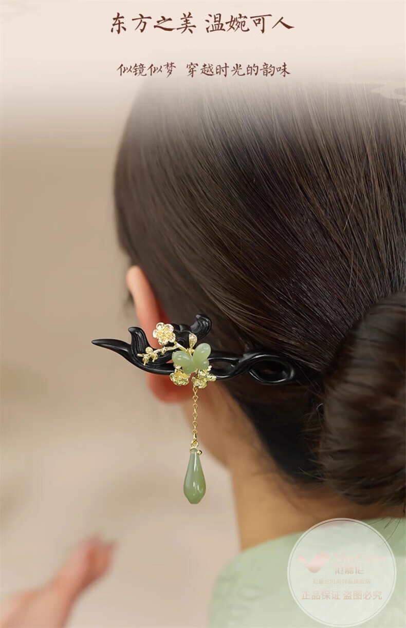 VanCalen (VanCalen) hairpin magnolia blossom ancient style female high-end niche Chinese style Hetian jade hairpin sandalwood tassel headdress stunning beauty moon shadow streamer