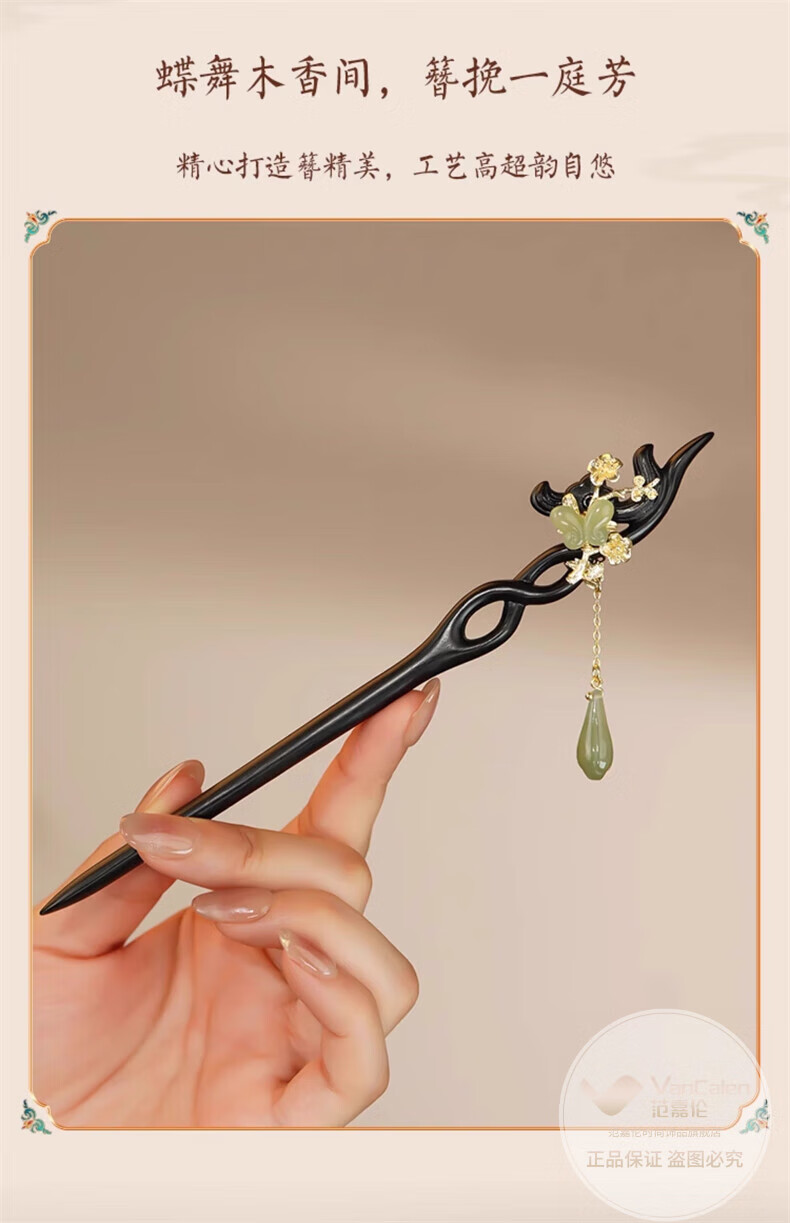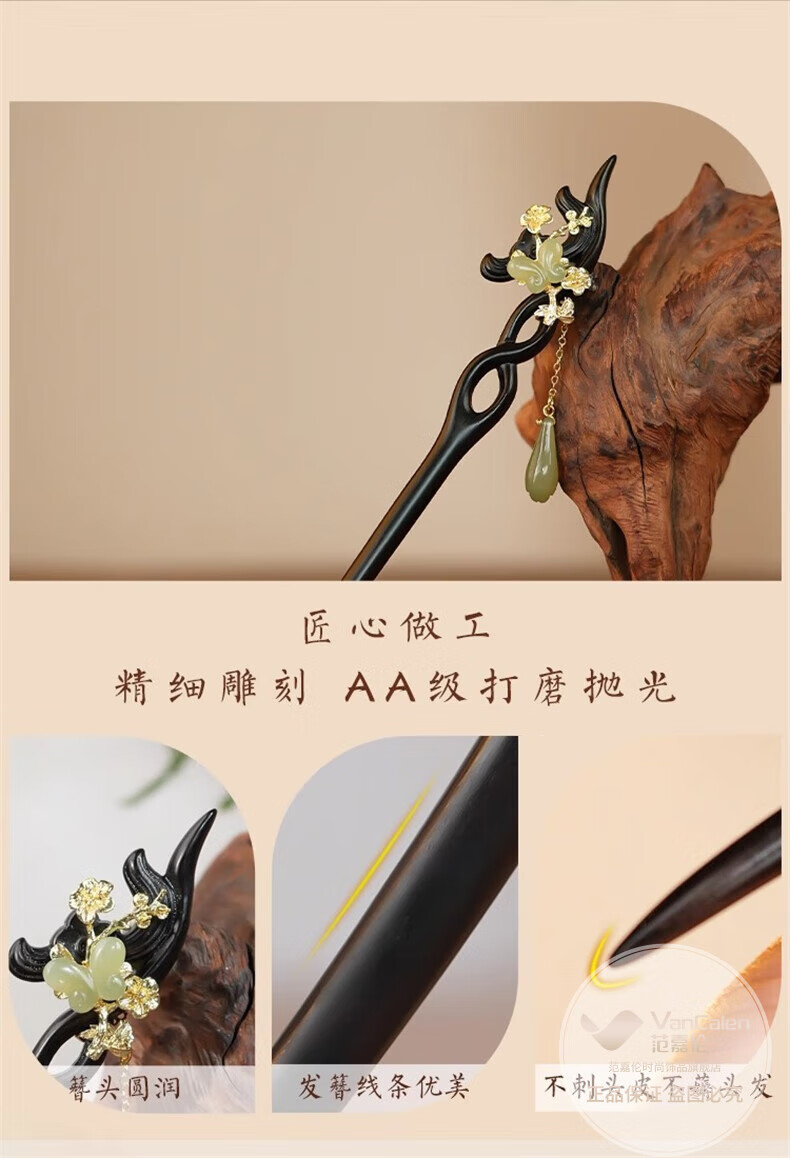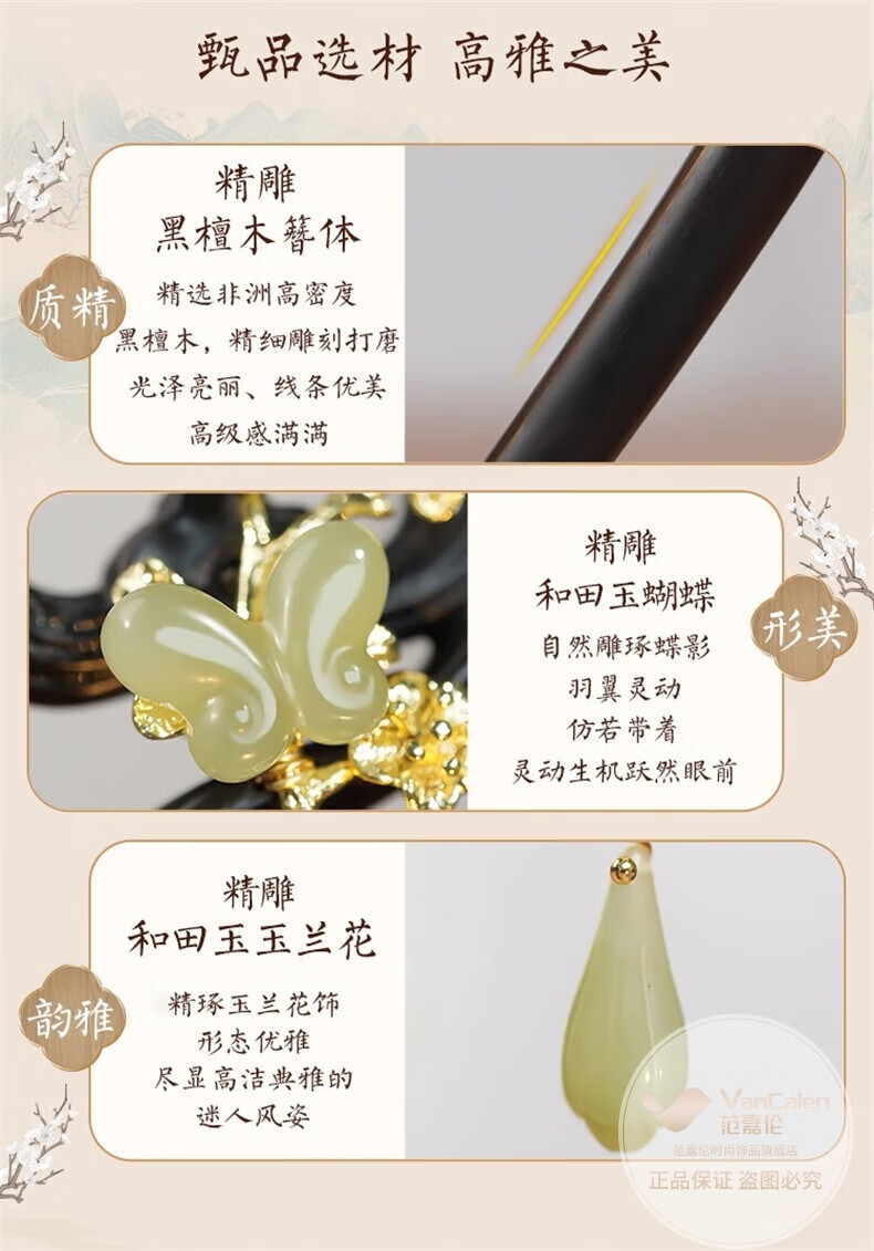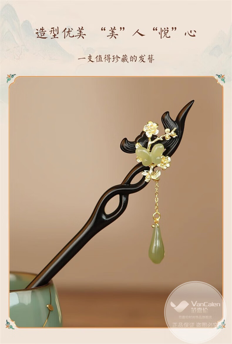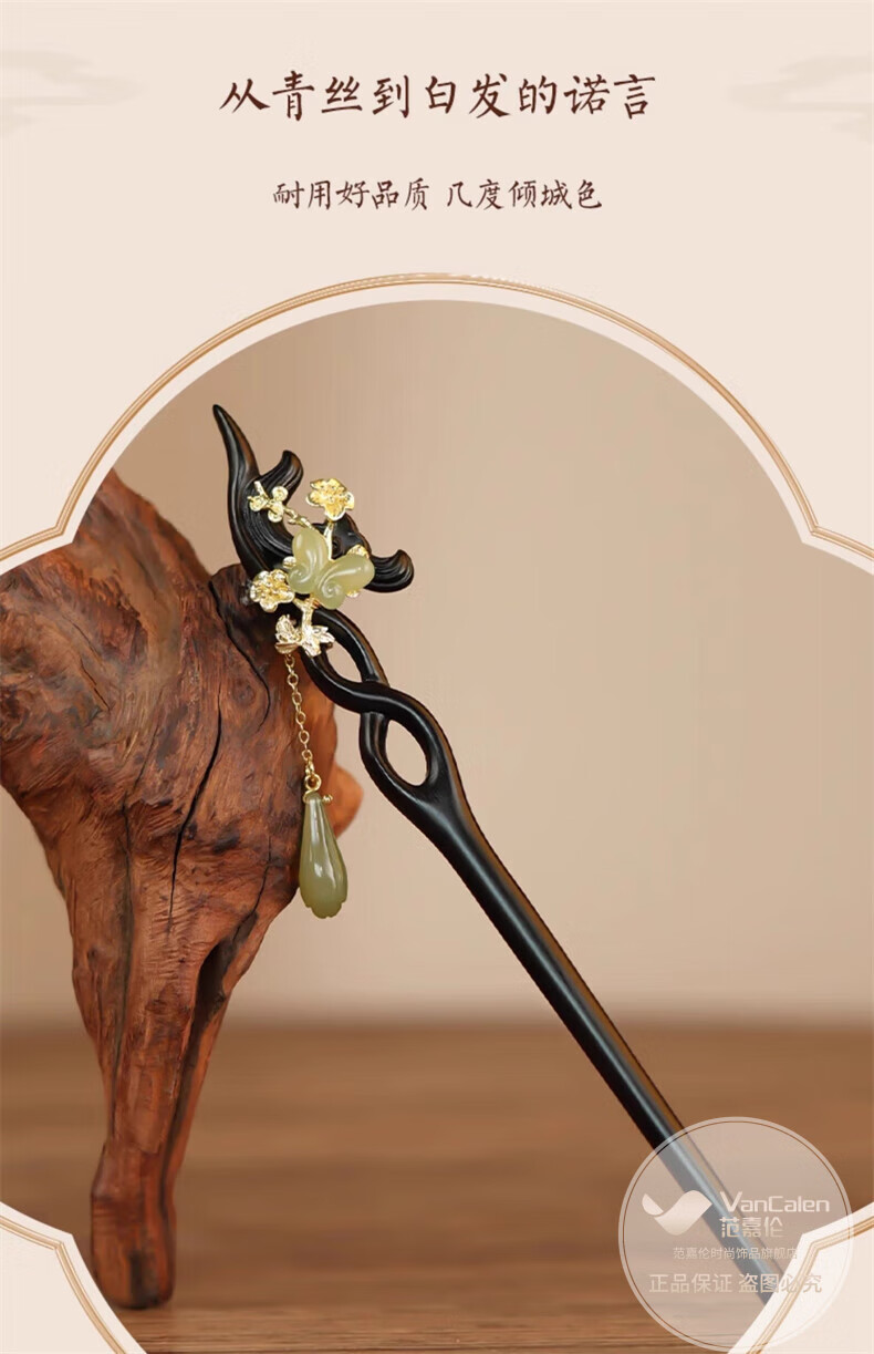 VanCalen (VanCalen) hairpin magnolia blossom ancient style female high-end niche Chinese style Hetian jade hairpin sandalwood tassel headdress stunning beauty moon shadow streamer