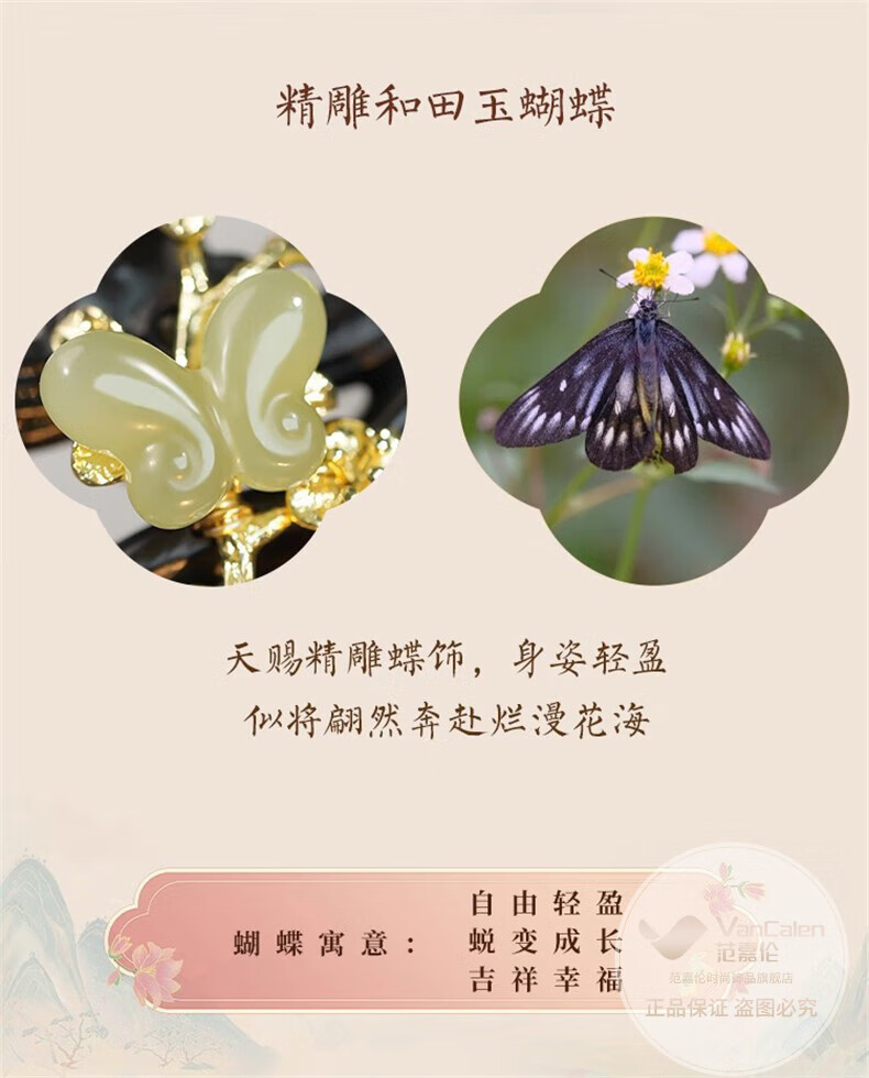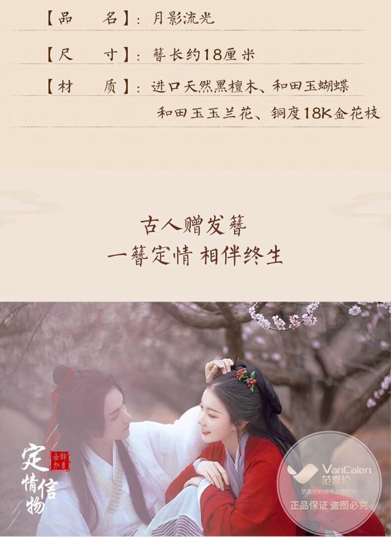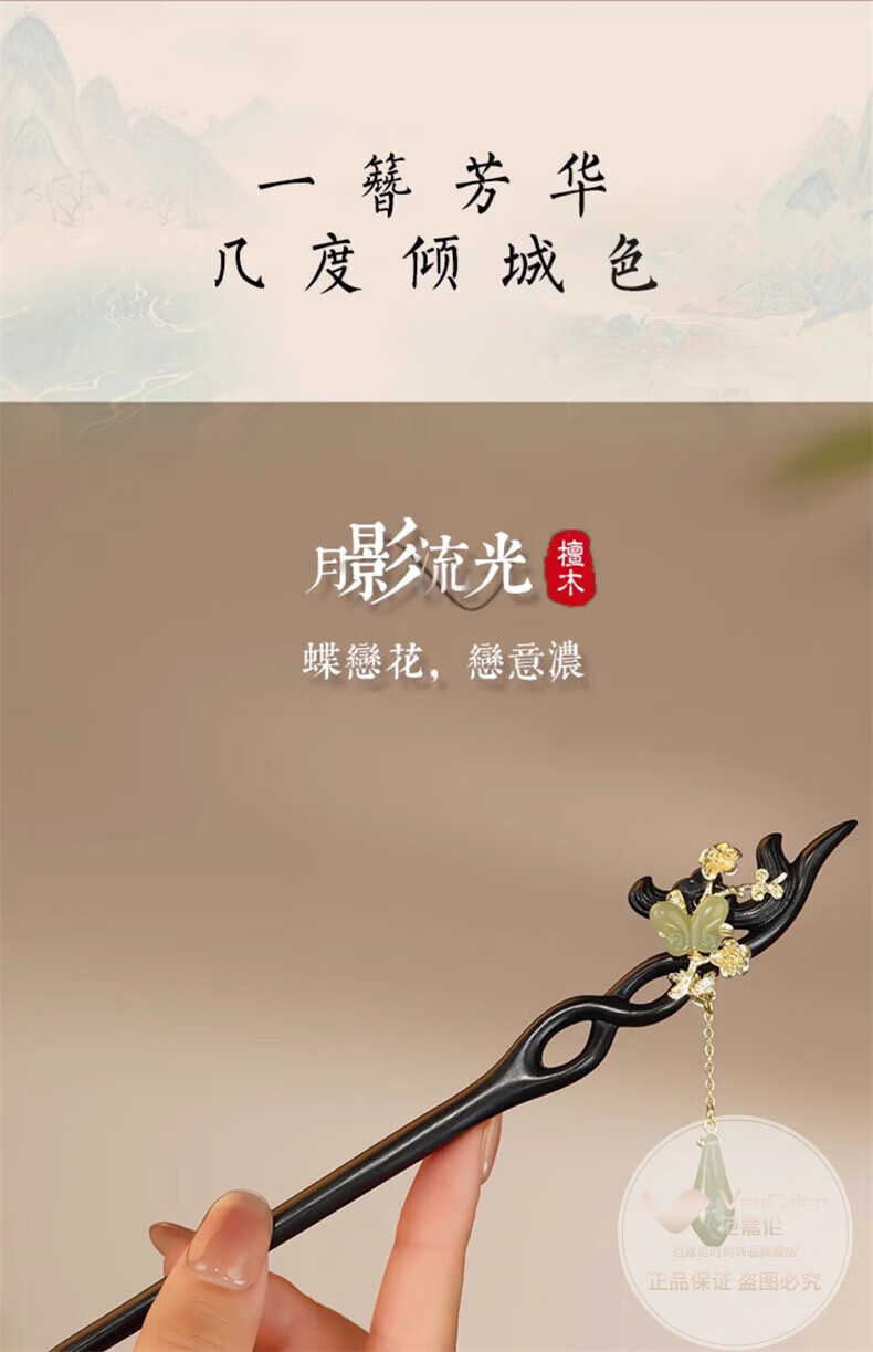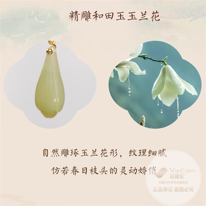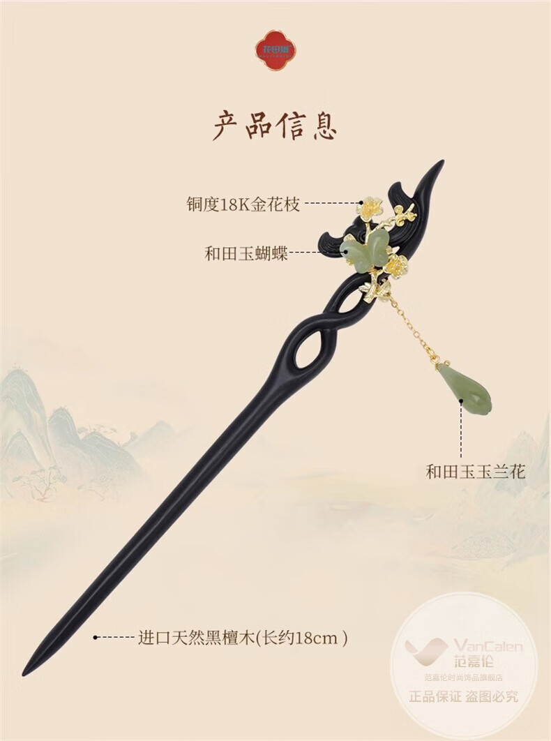 VanCalen (VanCalen) hairpin magnolia blossom ancient style female high-end niche Chinese style Hetian jade hairpin sandalwood tassel headdress stunning beauty moon shadow streamer