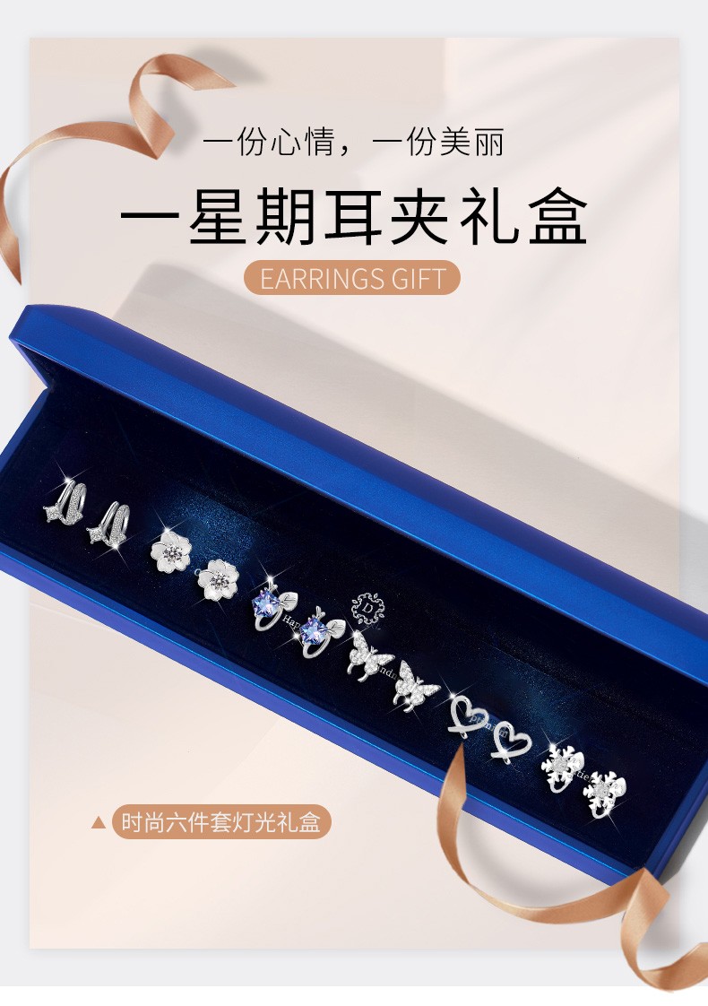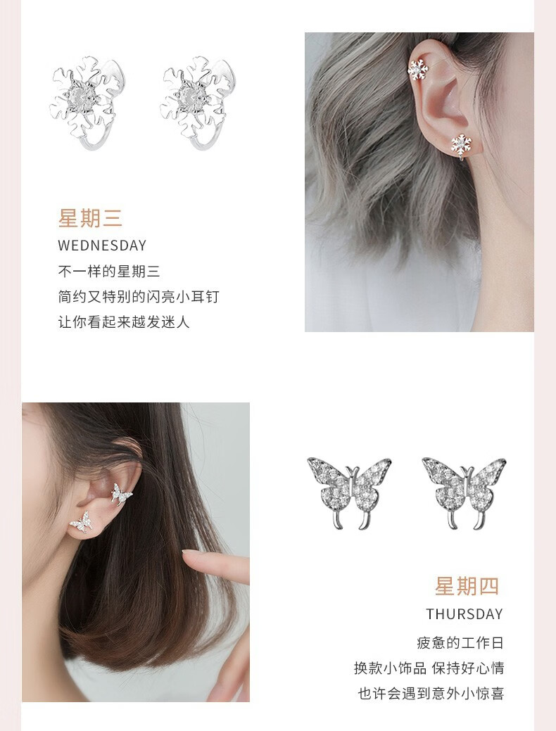 Crystal ear clips for women without piercings, 925 silver ear bone clips for one week, earrings and earrings, birthday gifts for girlfriends and wives, Tianku Starry Ear Clip Set T403