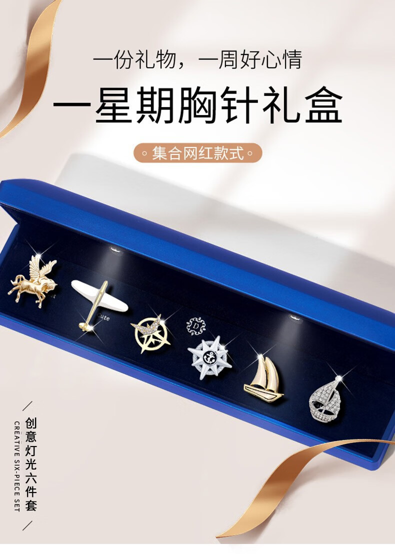 Dingjing Suit Brooch Male Birthday Gift for Boyfriend Dad Elder Suit Badge Practical Coat Collar Accessories Brooch Instant Success Brooch Light Box Set T234