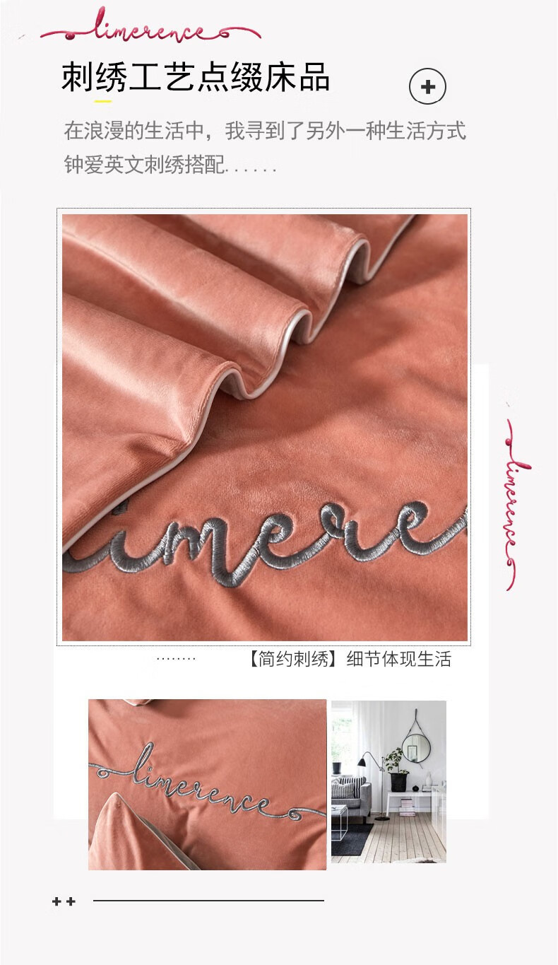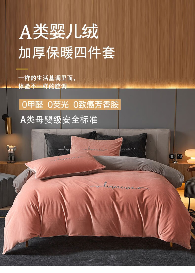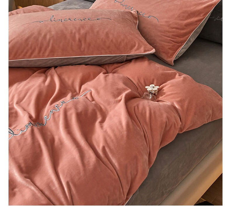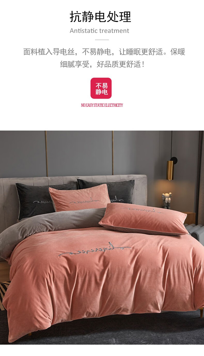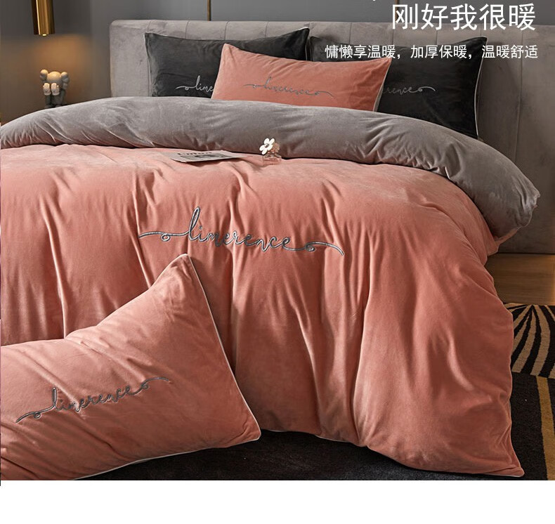 Yalu Class A baby milk velvet four-piece set of flannel sheets winter quilt cover coral velvet quilt cover sheet bedding Alluring pink + modern gray Class A standard baby velvet 1.8m sheet style four-piece set quilt cover 2*2.3m