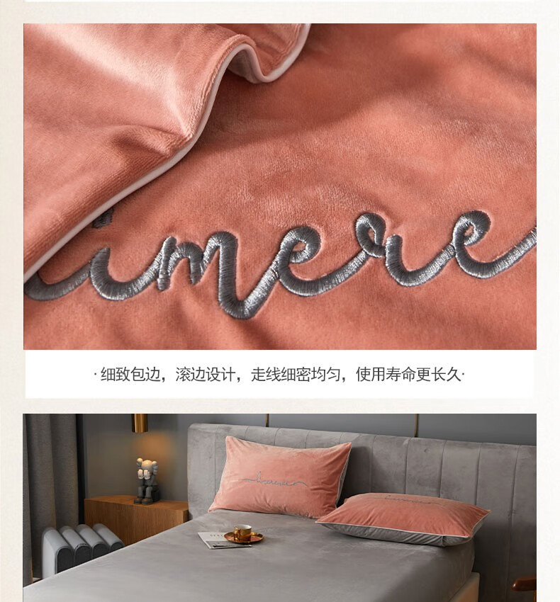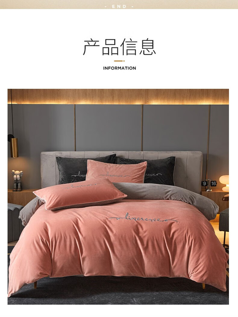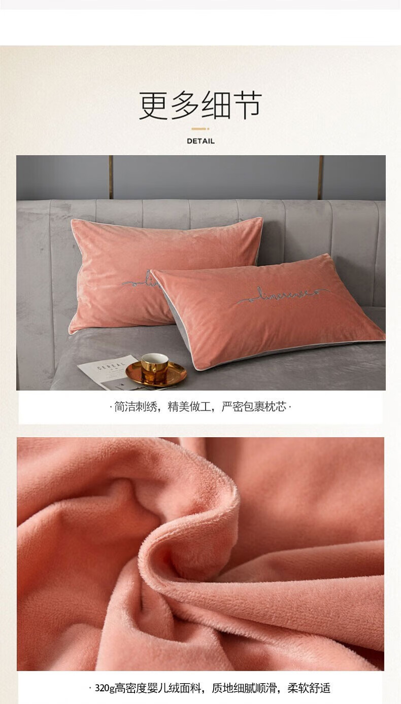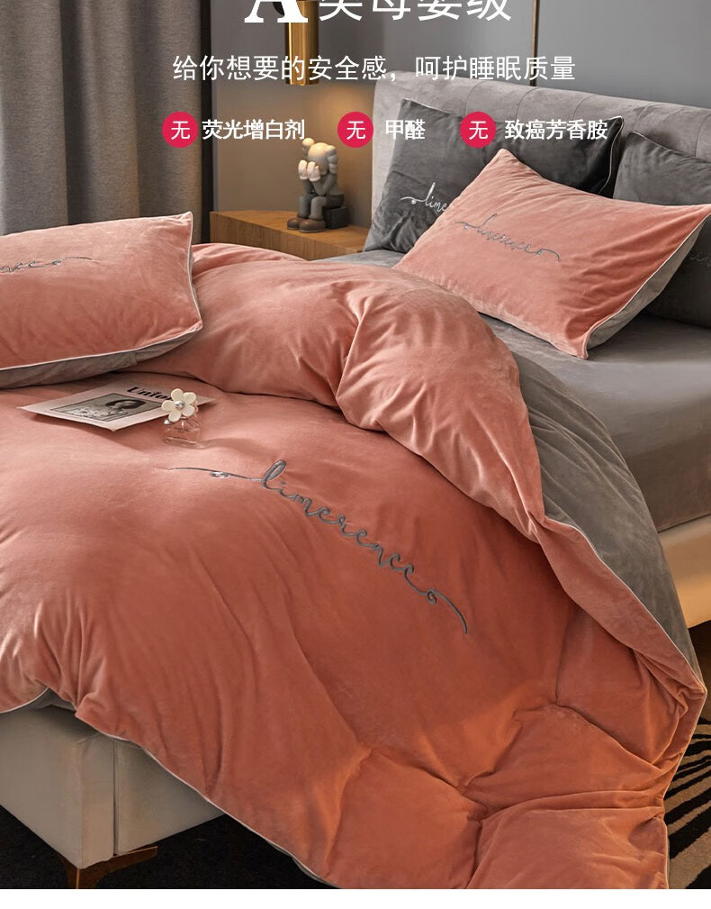 Yalu Class A baby milk velvet four-piece set of flannel sheets winter quilt cover coral velvet quilt cover sheet bedding Alluring pink + modern gray Class A standard baby velvet 1.8m sheet style four-piece set quilt cover 2*2.3m