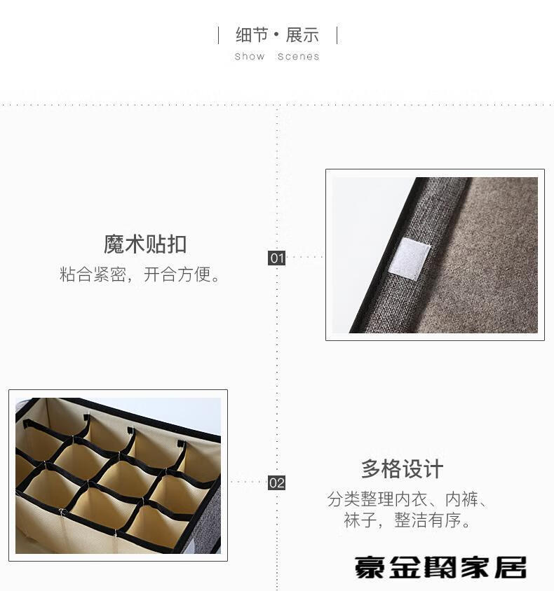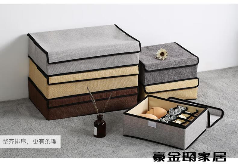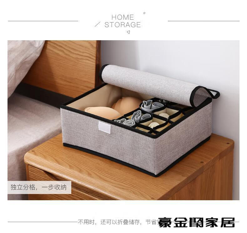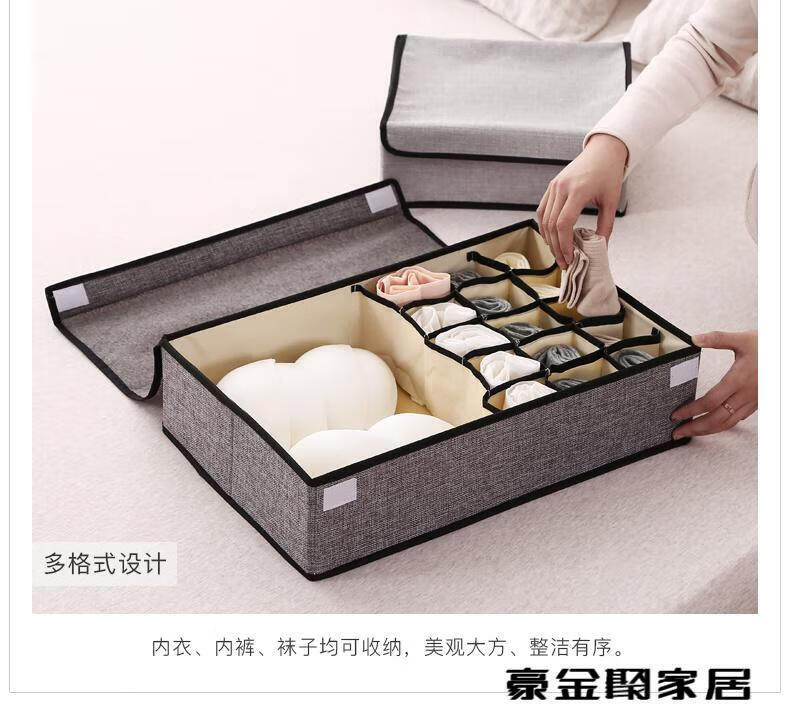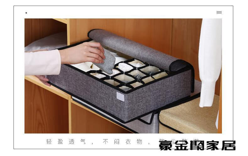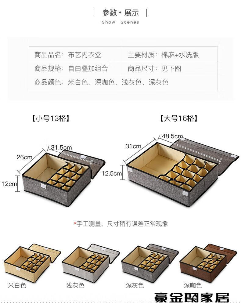 Haojinju underwear and socks storage box canvas fabric underwear underwear and socks storage box home divided three-in-one bra small dark gray 13 grids
