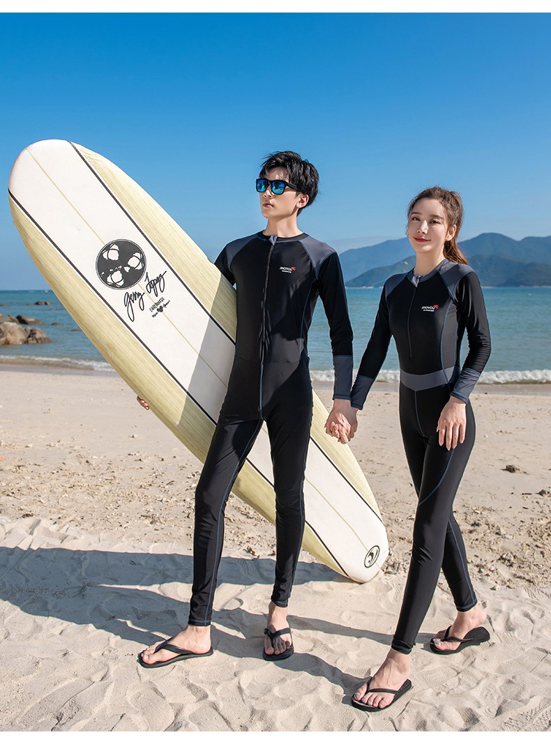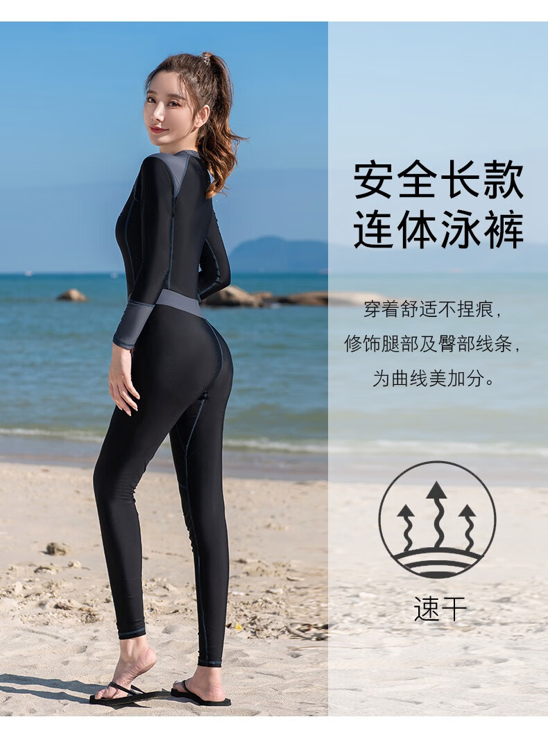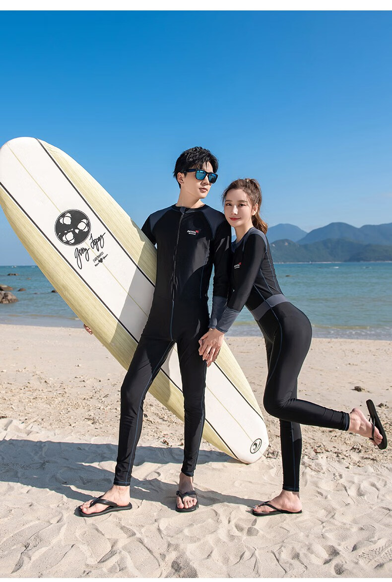 BOSOOT swimsuit women's one-piece boxer conservative long-sleeved trousers slimming and belly-covering couple's wetsuit hot spring swimsuit black men's XL