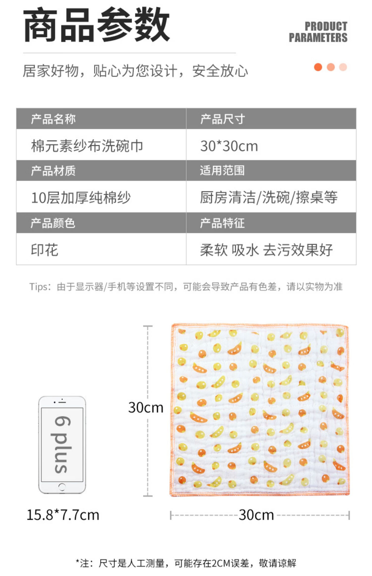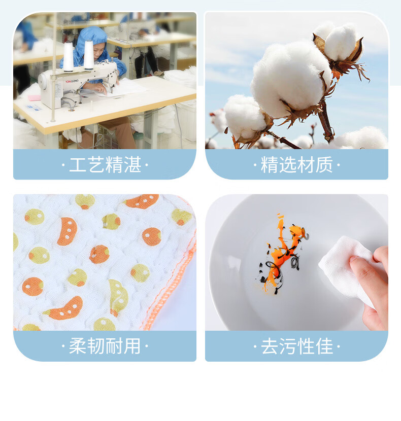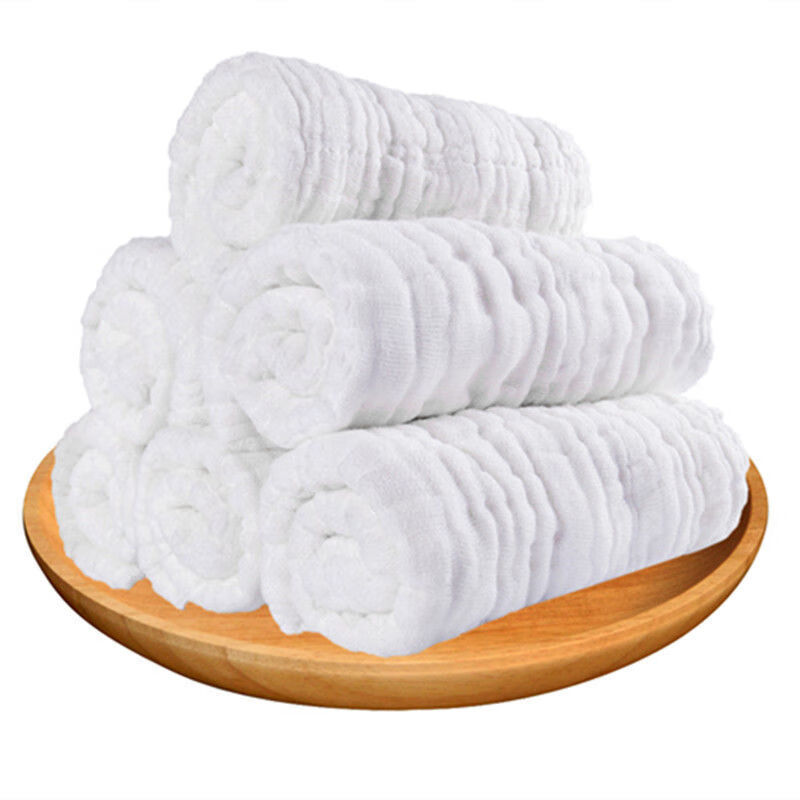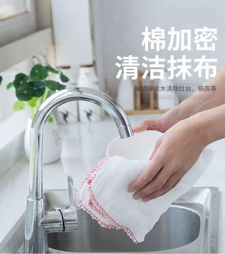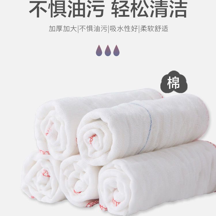 Household pure cotton thickened dishcloth, kitchen household absorbent rag, scouring pad, dishcloth, white cotton rag (5 pieces)