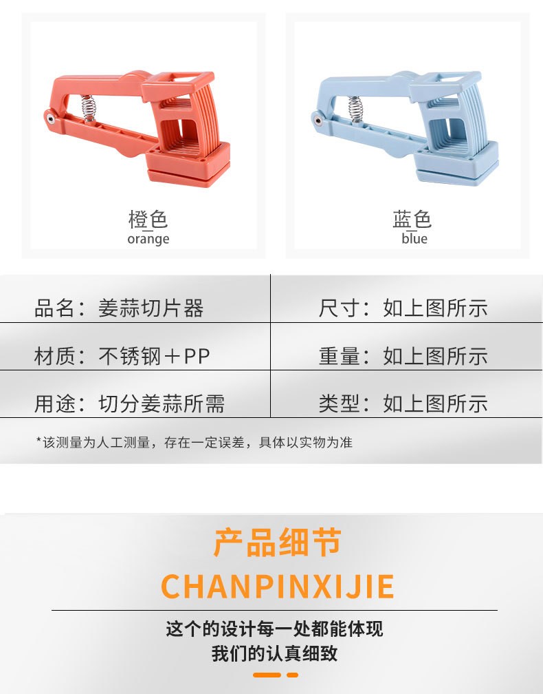 Xinghengmeng stainless steel ginger and garlic slices, mashed garlic, garlic tools, manual vegetable cutter, shredder, grater, garlic slices, random color, 1 pack