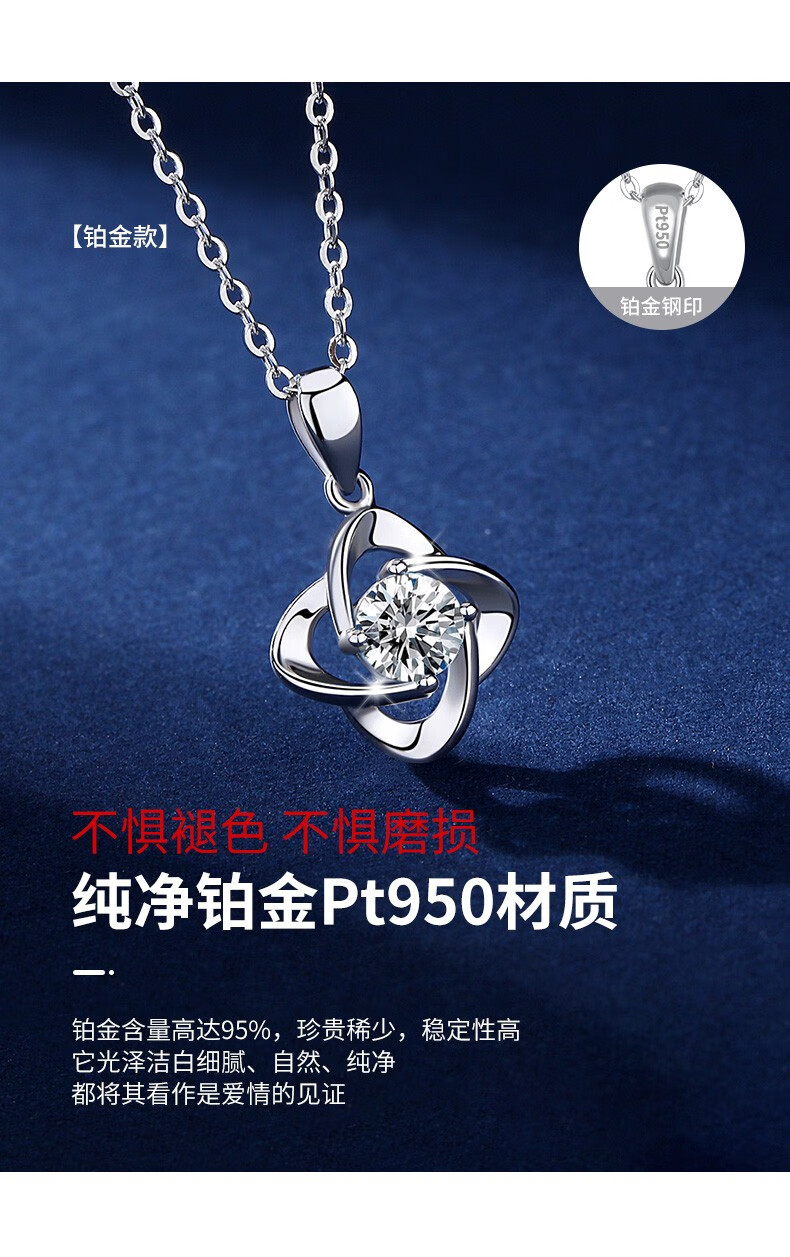 MZMZ platinum necklace women's four-leaf clover diamond platinum PT950 jewelry birthday Chinese Valentine's Day gift for girlfriend Platinum 999 luxury model - free engraving