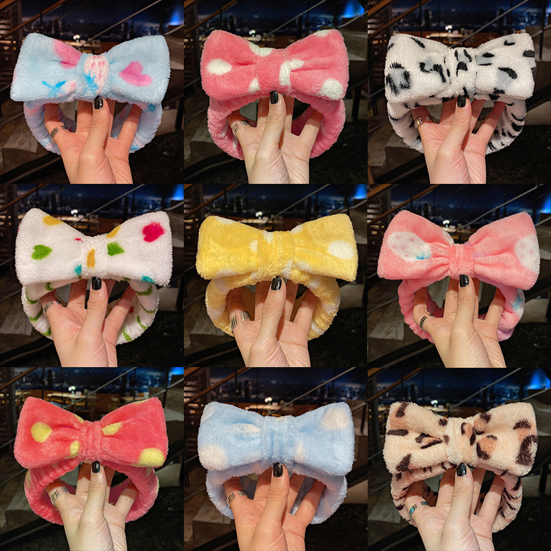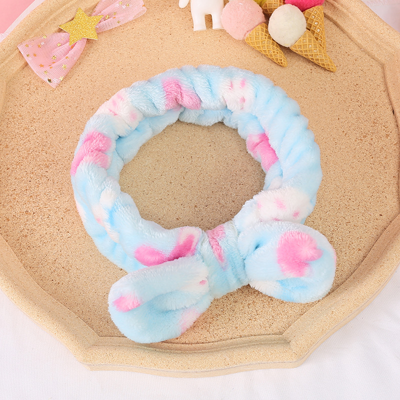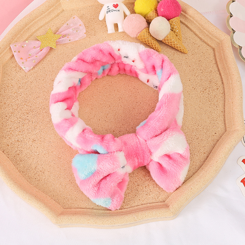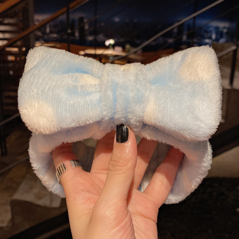 Meifuren Internet celebrity face wash headband Korean winter ladies wide-brimmed face wash headband bow headband hair accessories headdress New Year gift Year of the Tiger FD51 blue, white and pink stripes