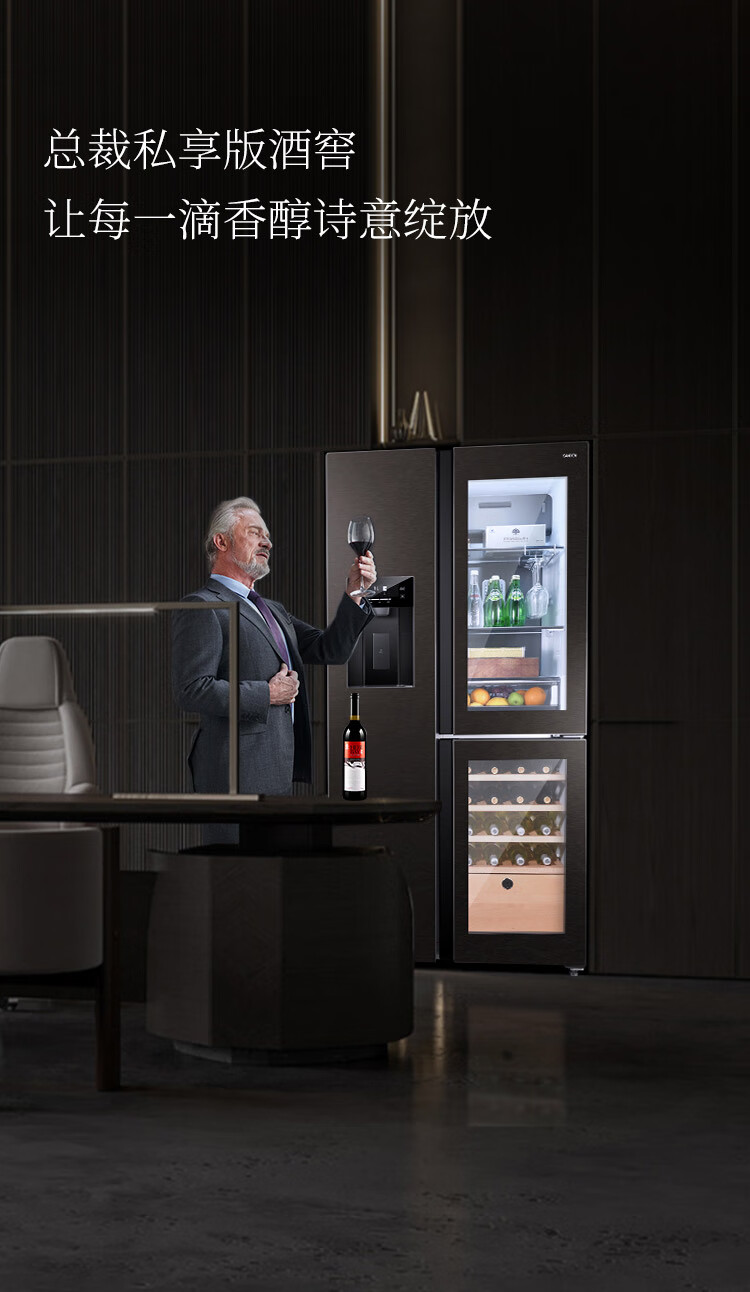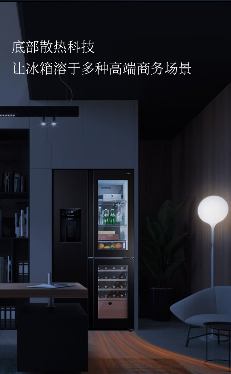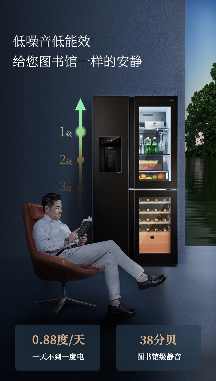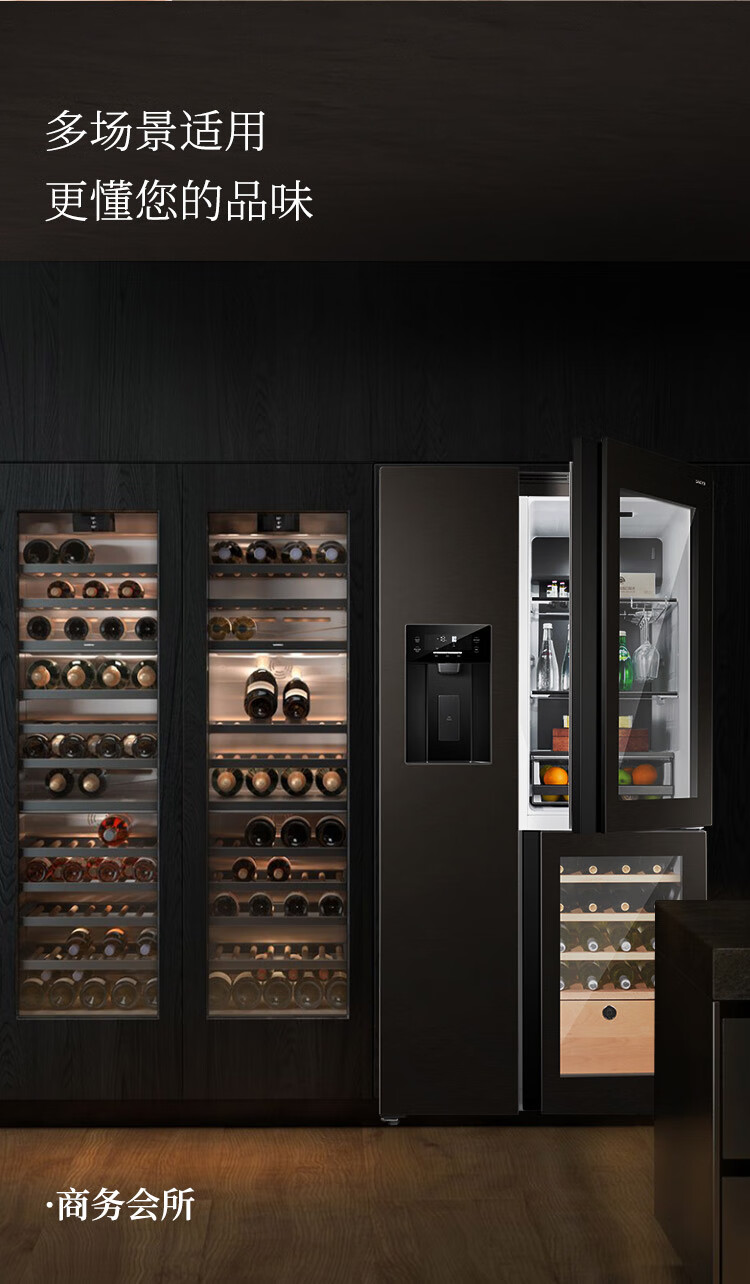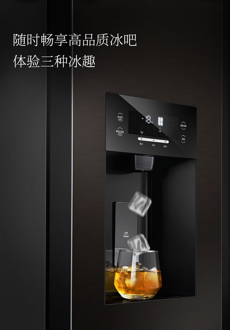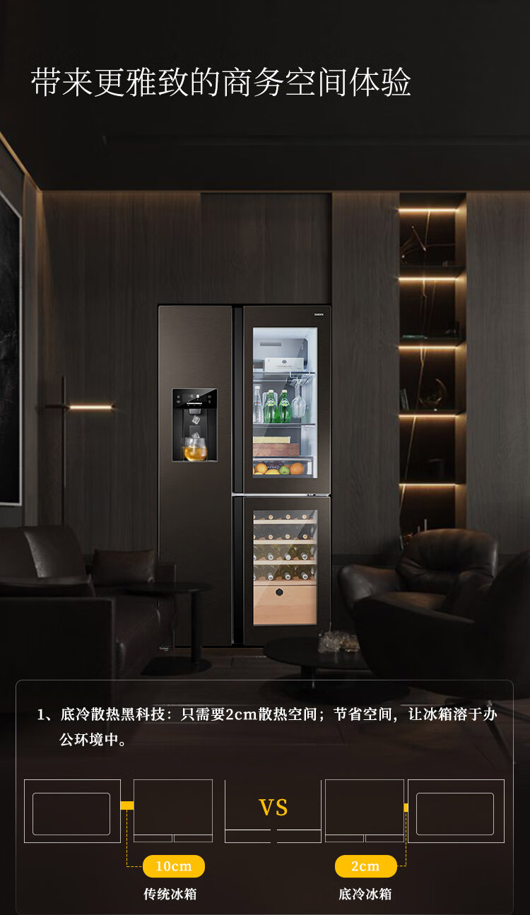 SANDEN Japan Sanden 540L T-shaped high-end glass first-class dual-frequency air-cooled commercial president refrigerator office home ice bar red wine cabinet fully automatic ice machine refrigerator BCD-540BTZG fully automatic ice machine + wine cabinet log brown