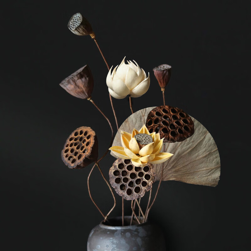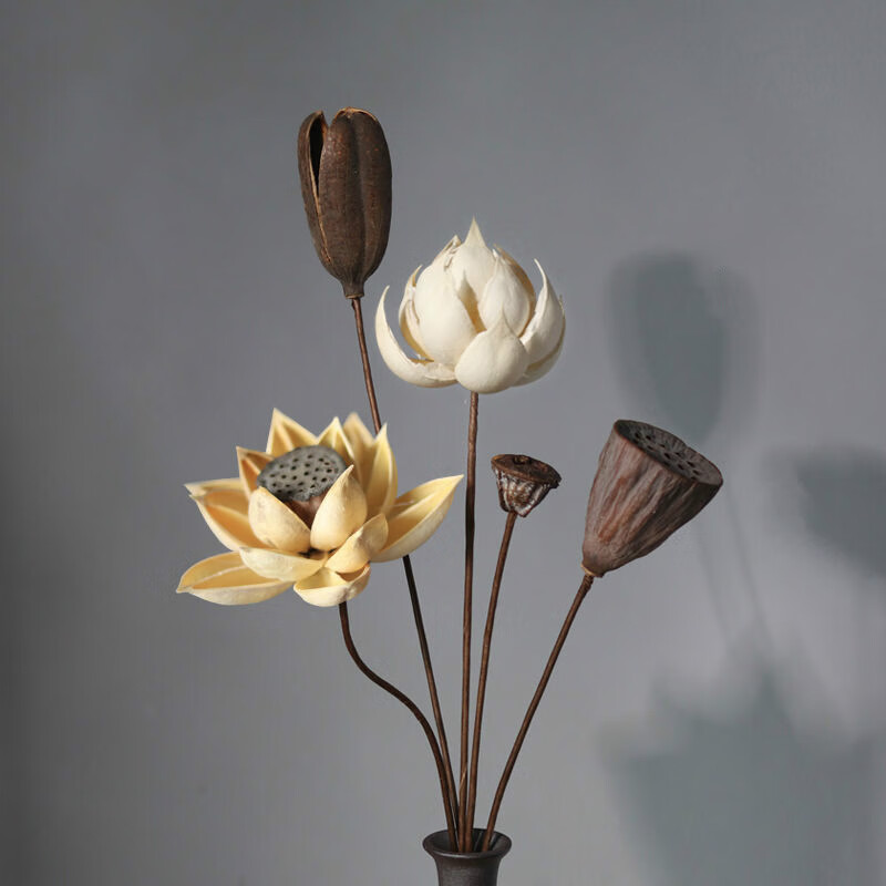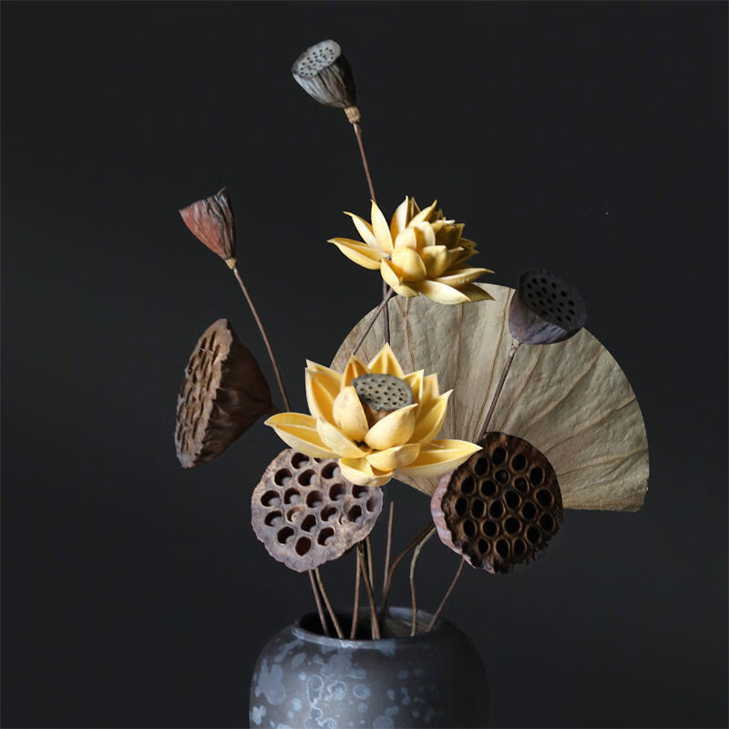 AIMAN dried lotus flower bouquet lotus lotus real flower Zen style air-dried Chinese flower arrangement living room decoration ornaments to attract wealth Set of 10 (with jar)