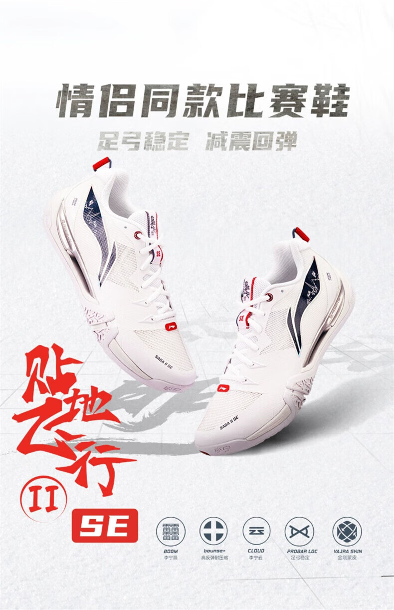 Li Ning 2025 New Guaranteed Authentic Badminton Shoes Men's and Women's Same Style Sports Shoes Ground-Flying AYTV003 AYZR007-3 Standard White 40