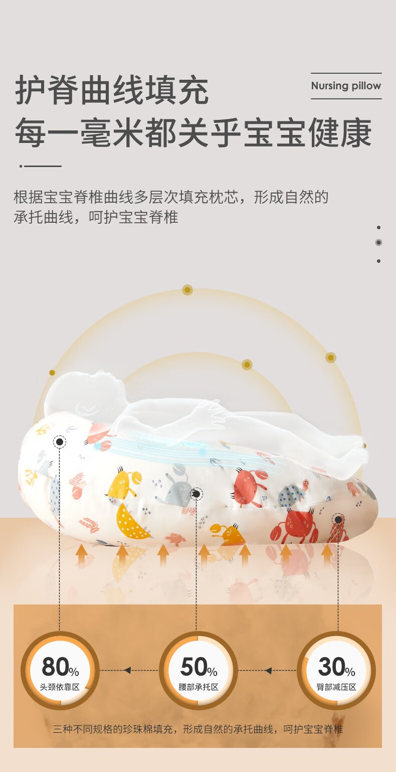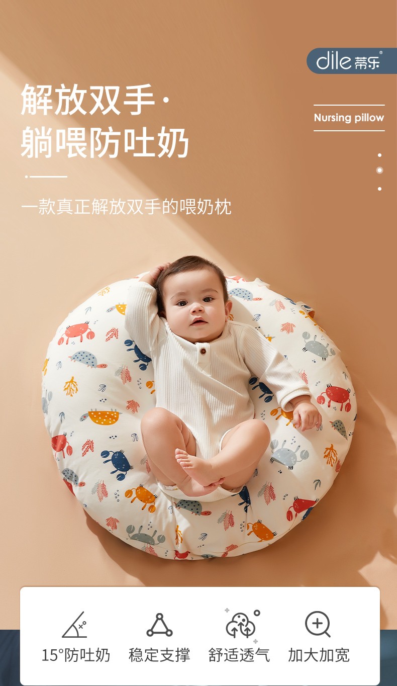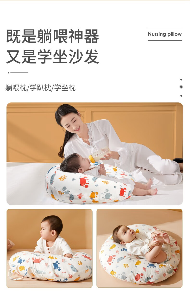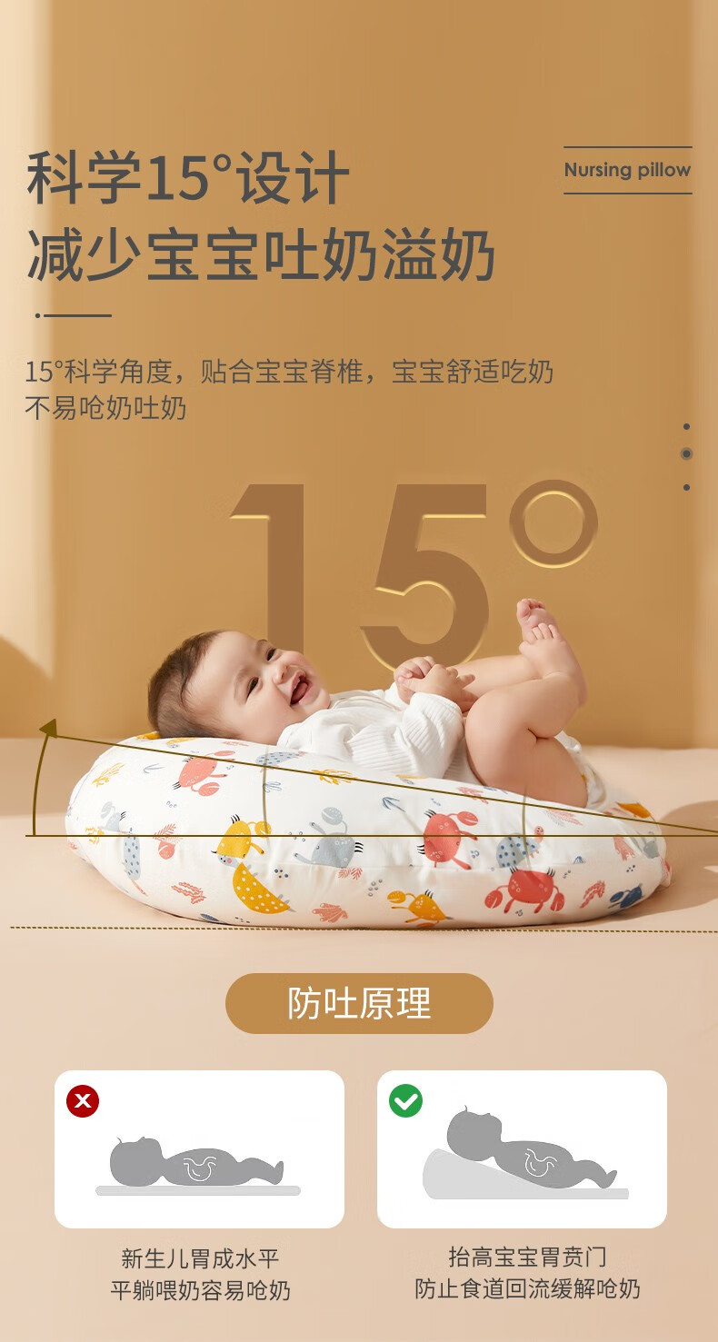 Tile Anti-vomiting Slope Pillow Baby Nursing Pillow Slope Cushion Newborn Soothing Pillow Cushion Breastfeeding Artifact 0-1 Years Old Hot Selling Lake Ocean (Class A Knitted Cotton) Suitable for 0-1 Years Old