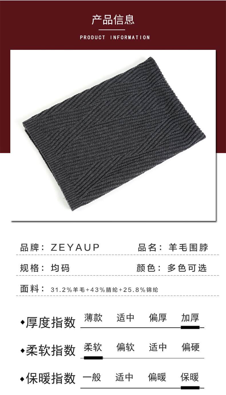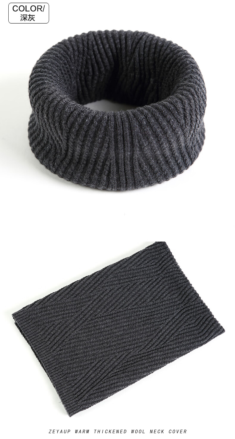 ZEYAUP Wool Men's Winter Pullover Scarf Thickened Neck Protector Outdoor Cycling Windproof Knitted Warm Neck Cover Dark Gray
