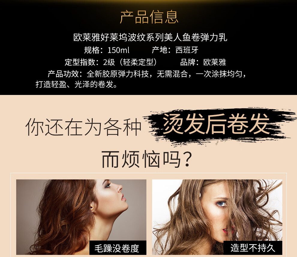 L'Oreal (LOREAL) elastomeric curly hair moisturizing curling hair styling Trilia corrugated mermaid styling elastic cream curly hair long-lasting styling