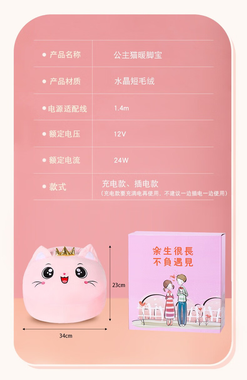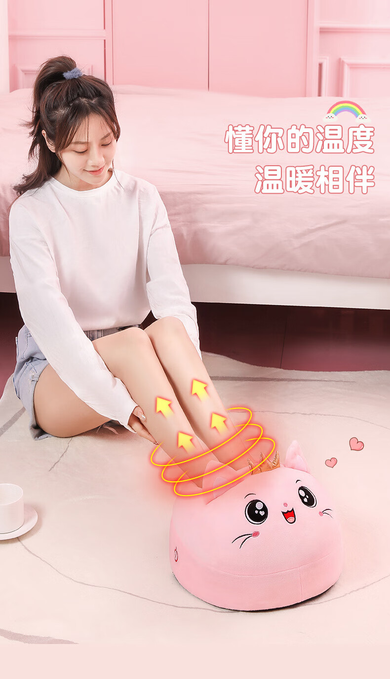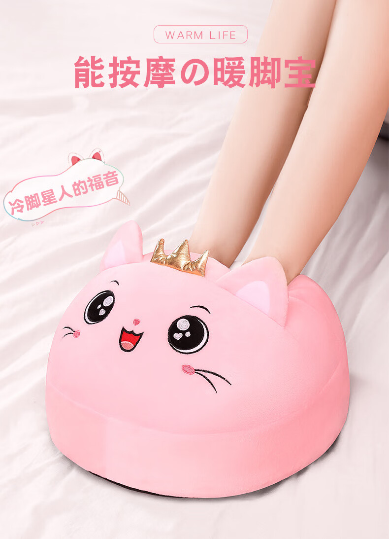 Massage foot warmer, foot warmer artifact for sleeping in bed, rechargeable baby warmer, birthday gift for girlfriend and best friend, rechargeable princess cat, hot compress + kneading