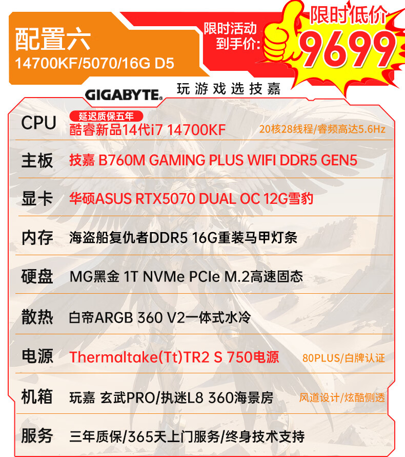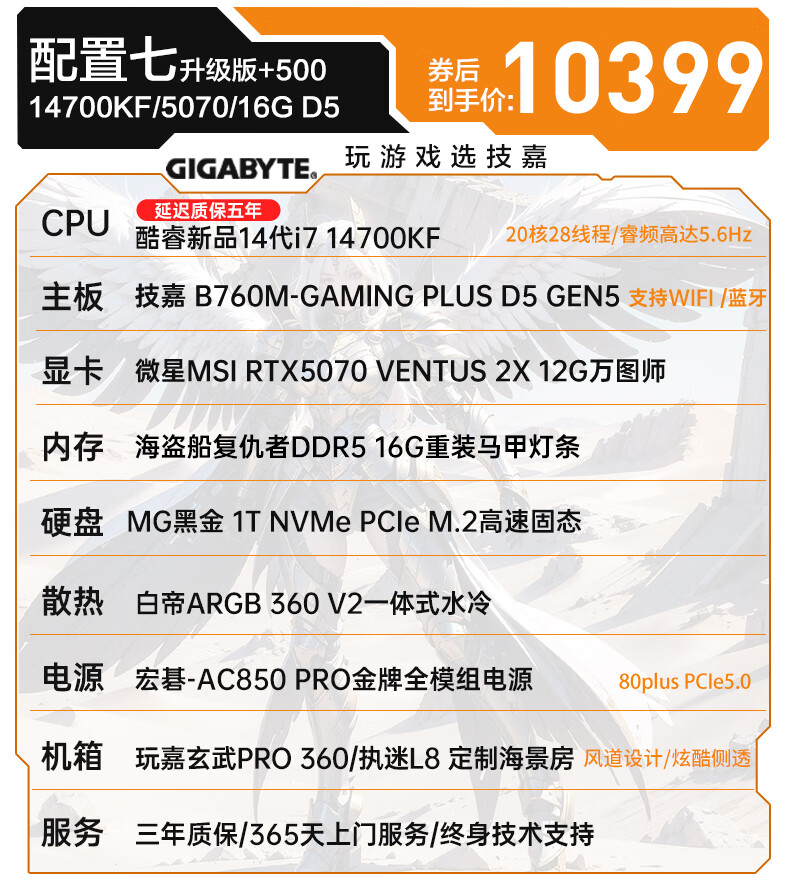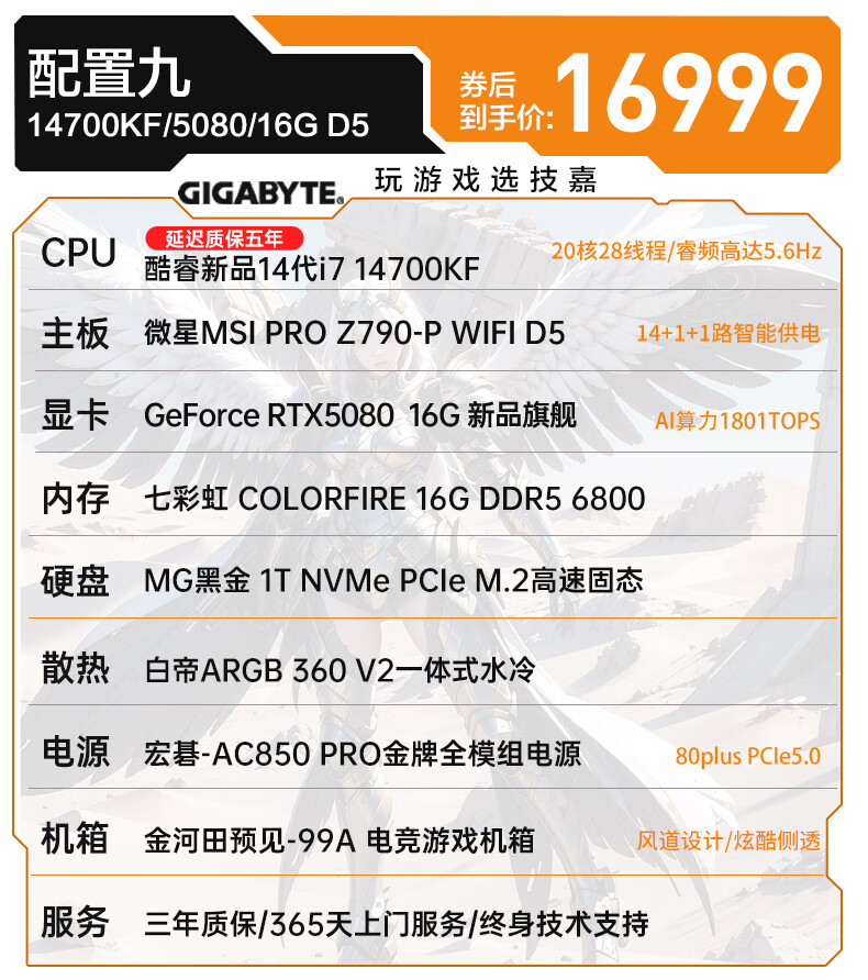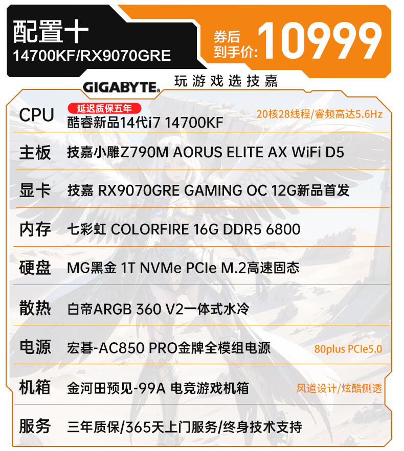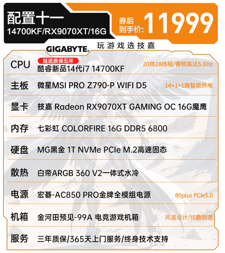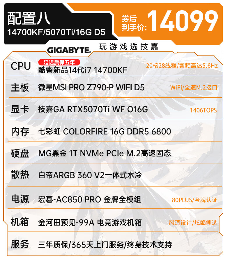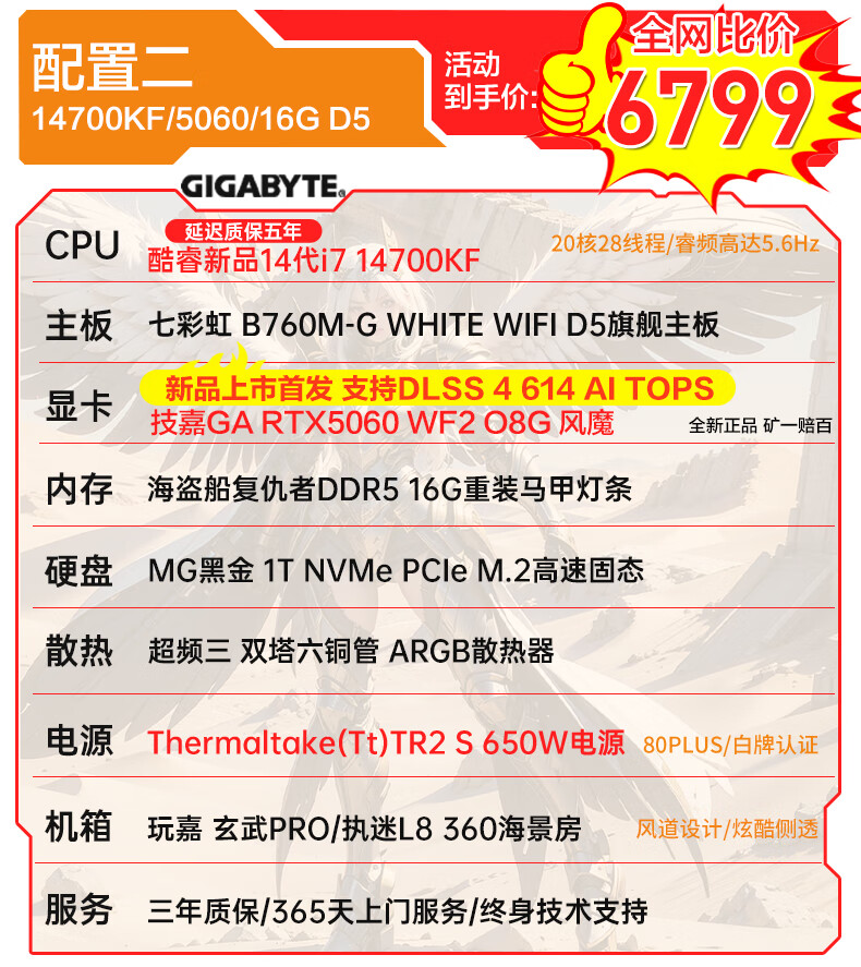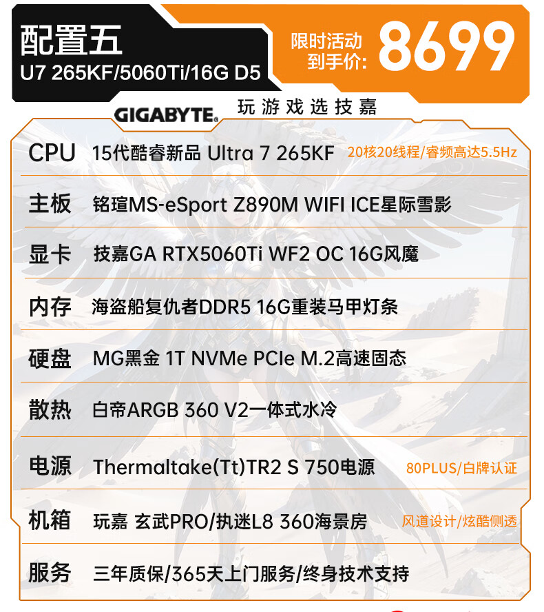 Gigabyte Ultra7 265K/14700KF/RTX5060/5070Ti assembled computer host live broadcast Ai rendering high configuration e-sports game chicken computer desktop complete set two i7 14700KF+RTX5060 single host
