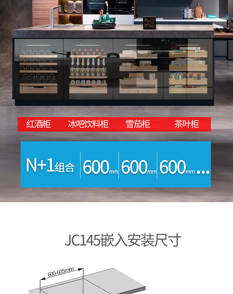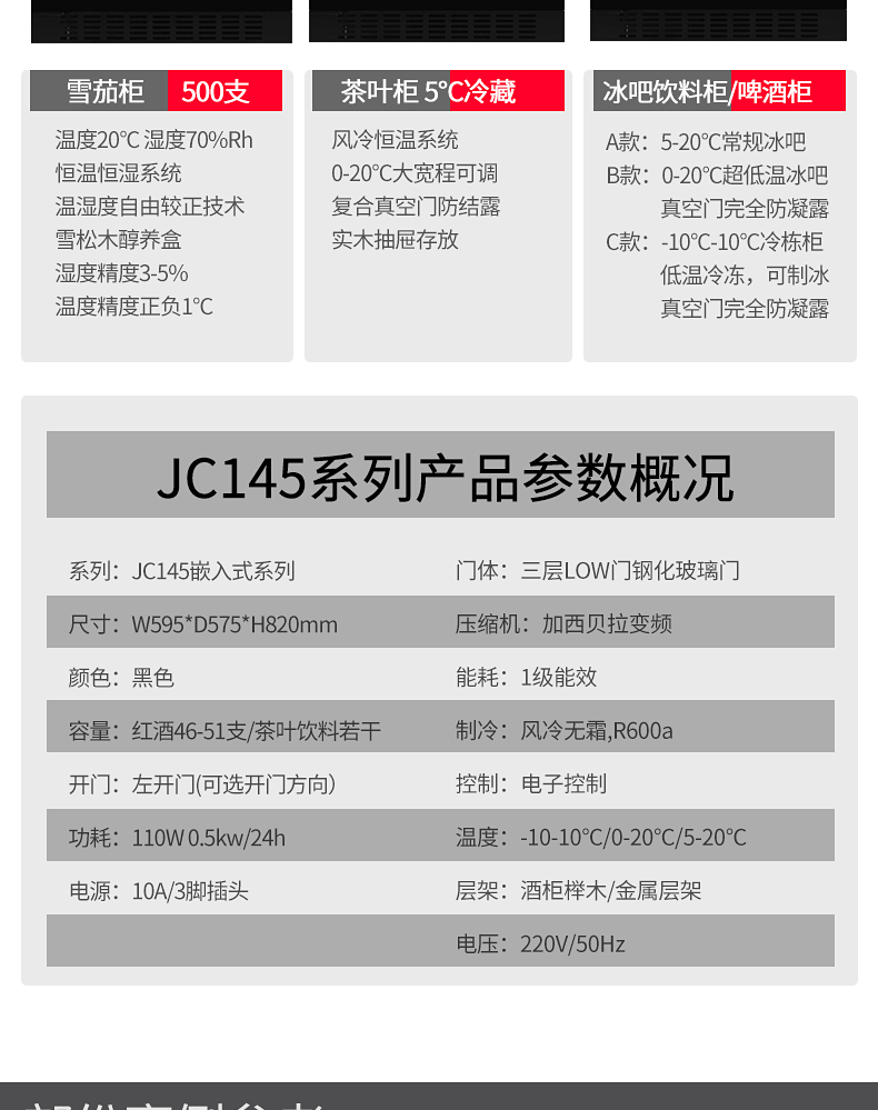 Gironde JC145 built-in cigar cabinet, red wine cabinet, constant temperature wine cabinet, beverage cabinet, ice cream refrigerator, fresh cabinet, tea constant temperature refrigerator, household frequency conversion-full glass door single temperature wine cabinet, 51 bottles