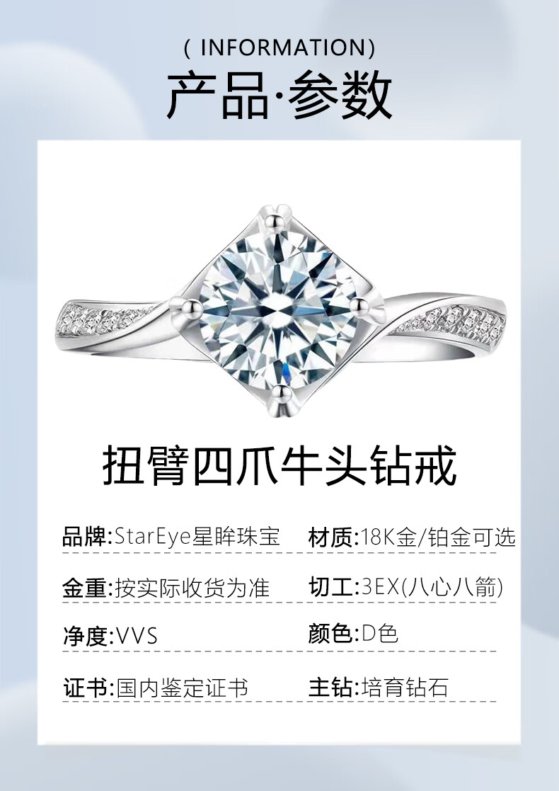 AVHE double certificate 950 platinum diamond ring four-claw twisted arm bull head ring cultivated diamond wedding platinum gift Qixi Festival platinum-30 points D color cultivated diamond 9-20 circle number can be noted