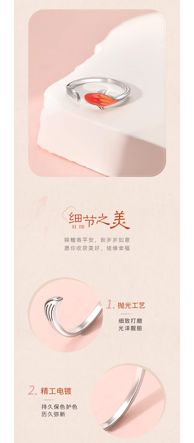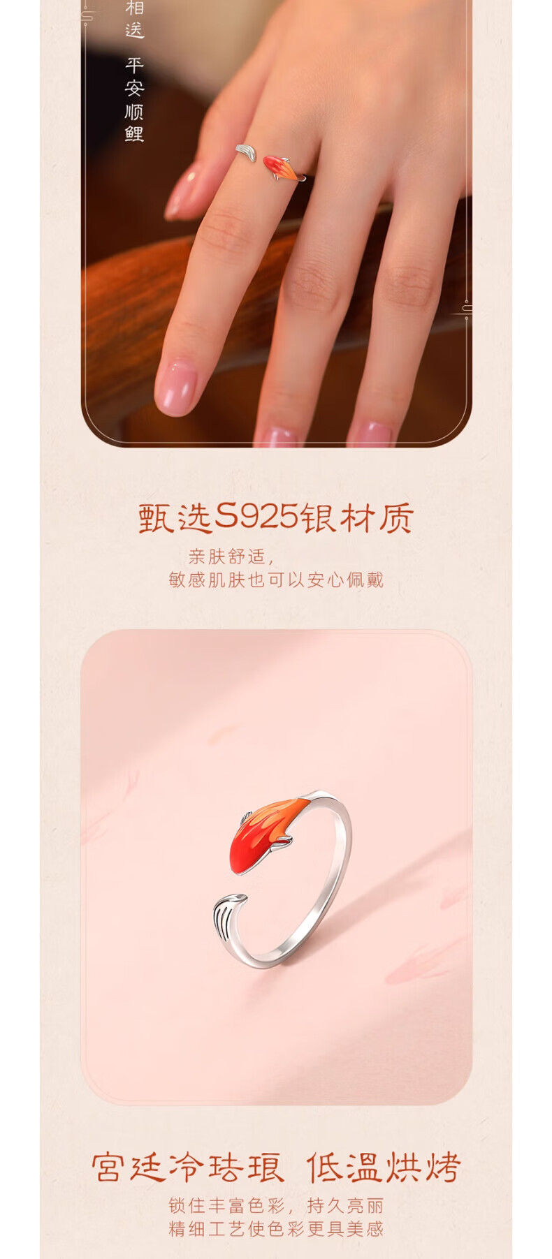 Hongzhuangnuo Lucky Koi Landing Silver Ring Female Entrance Exam Good Luck Student Ring Best Friend Little Tiger Ring Gift Female R0318 Koi Ring