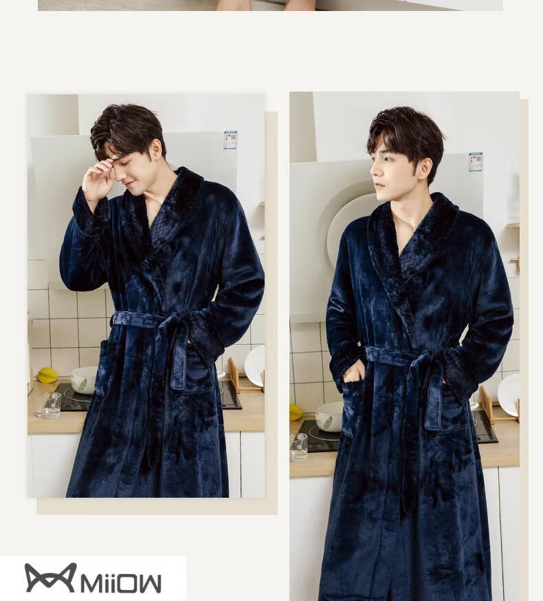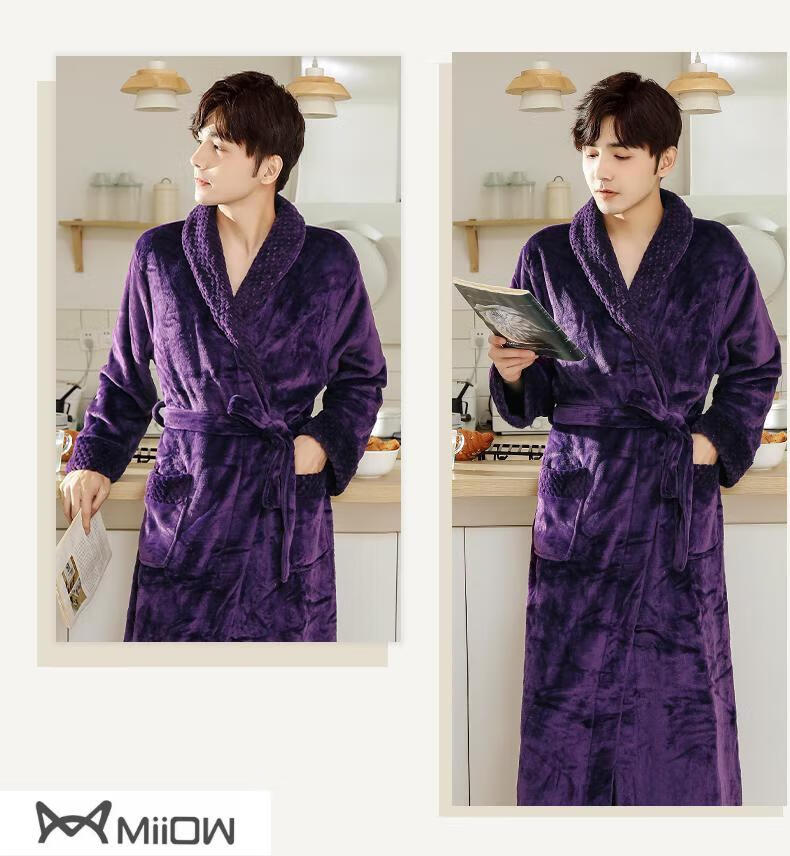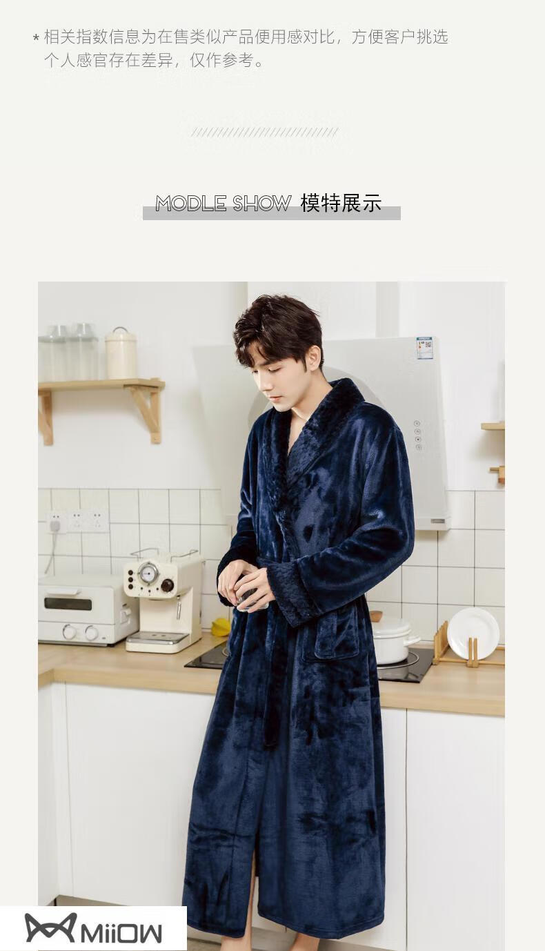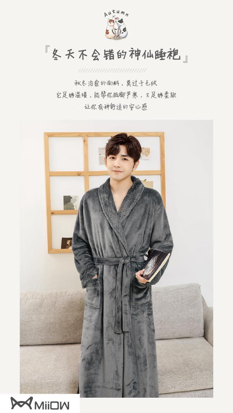 MiiOW flannel nightgown for men in spring and autumn thickened long-sleeved bathrobe coral velvet large size one-piece pajamas thick autumn and winter gray splicing model male XL suitable for 160-200Jin Jin equals 0.5 kg