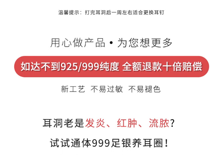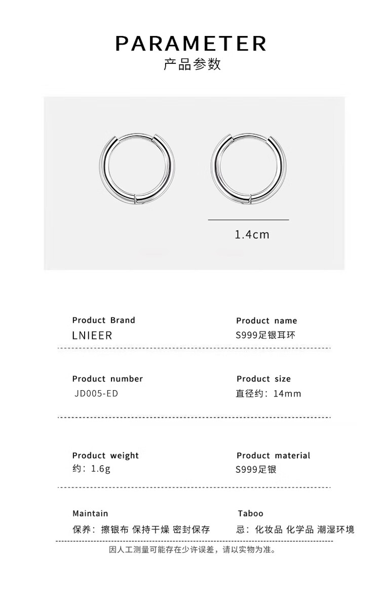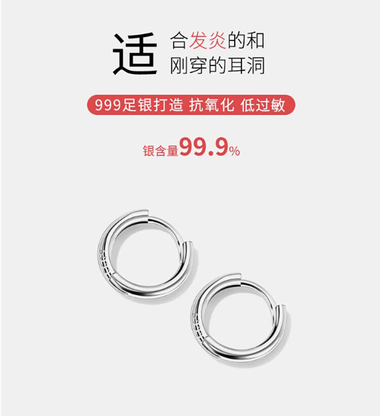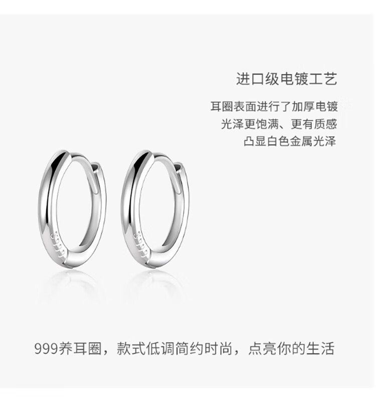 Lnieer 999 Pure Silver Ear Hole Earrings Women's Silver Earrings Earrings Ear Bone Nails Simple Sleeping No-Removal Ear Stick Silver Earrings 999 Pure Silver Earrings Pair