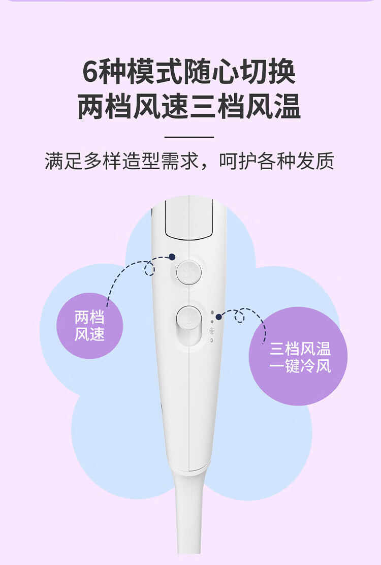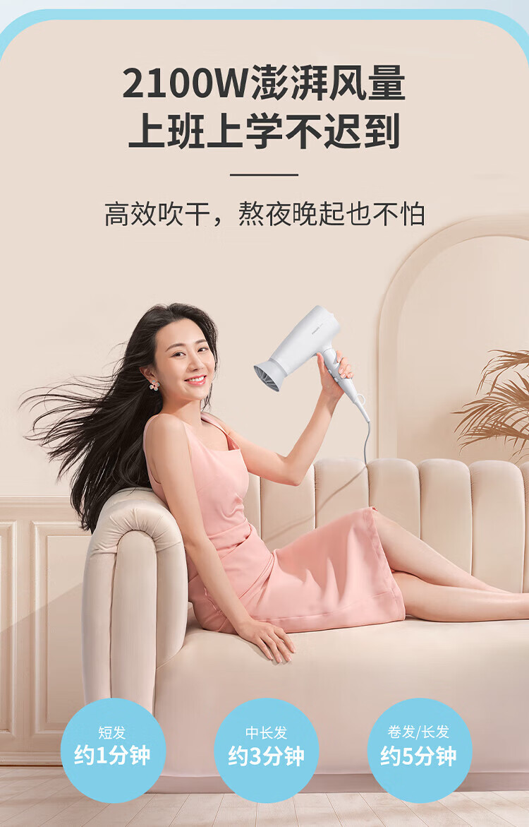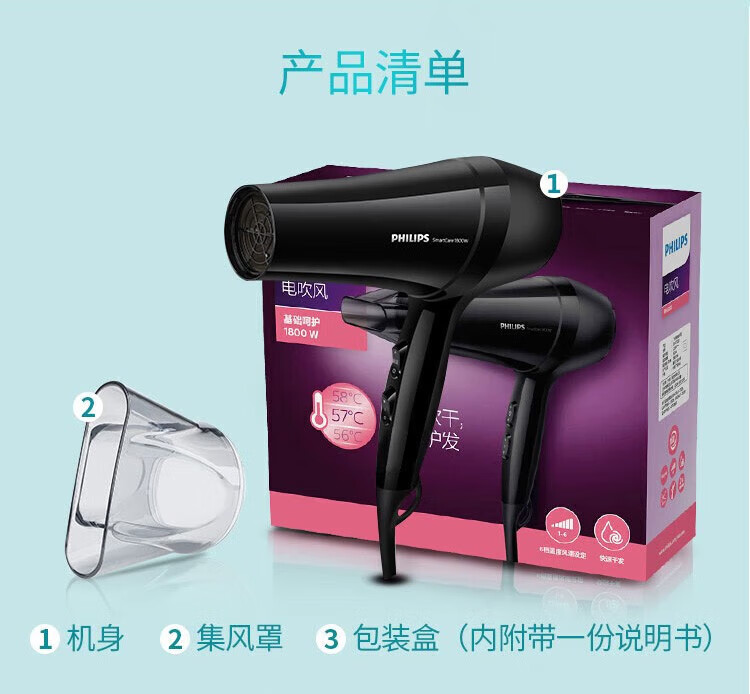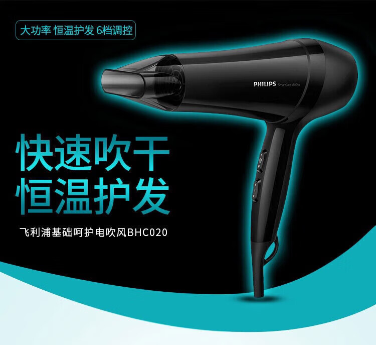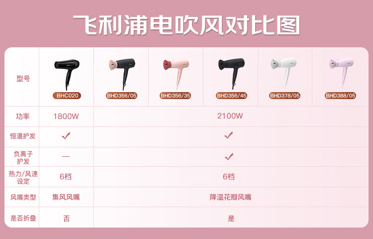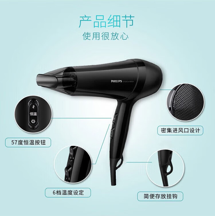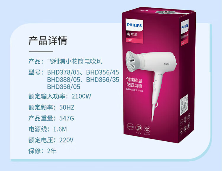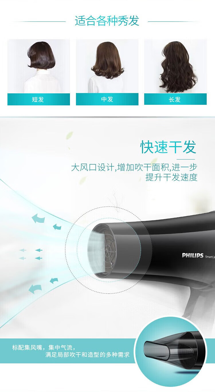 Philips (PHILIPS) hair dryer household hair dryer constant temperature nozzle hair care high-power quick-drying dryer surging air volume foldable body shiny and smooth air intake safety design birthday gift negative ion hair care BHD378