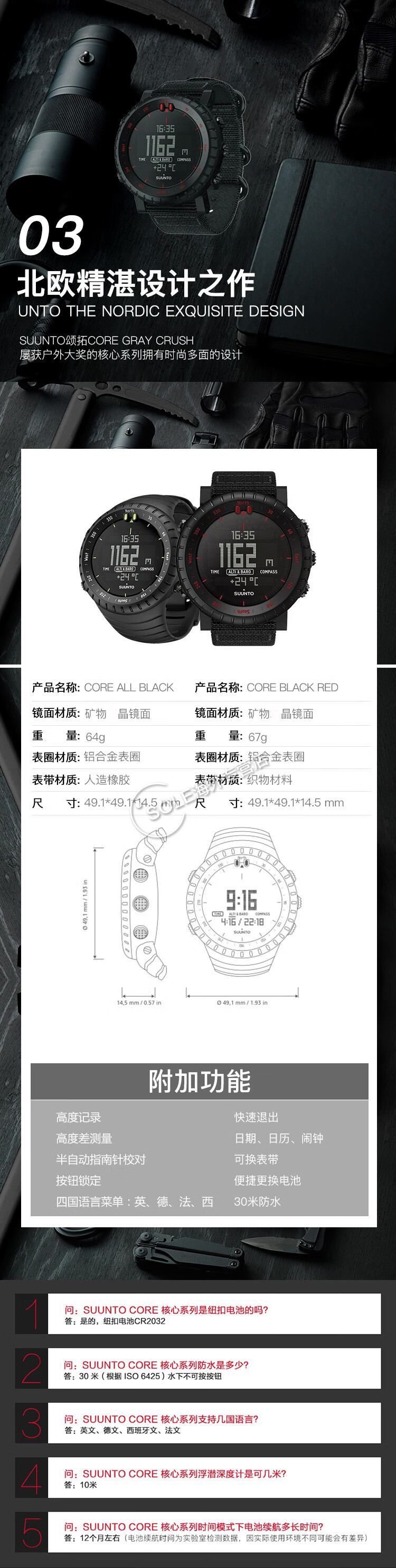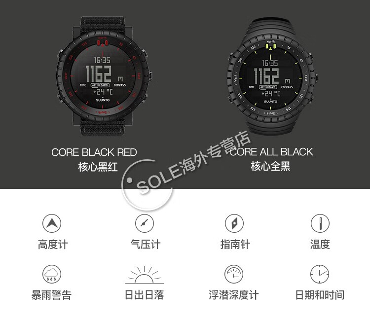 SUUNTO CORE core series men's watch outdoor sports quartz watch Black Red/black red