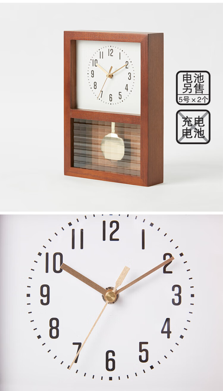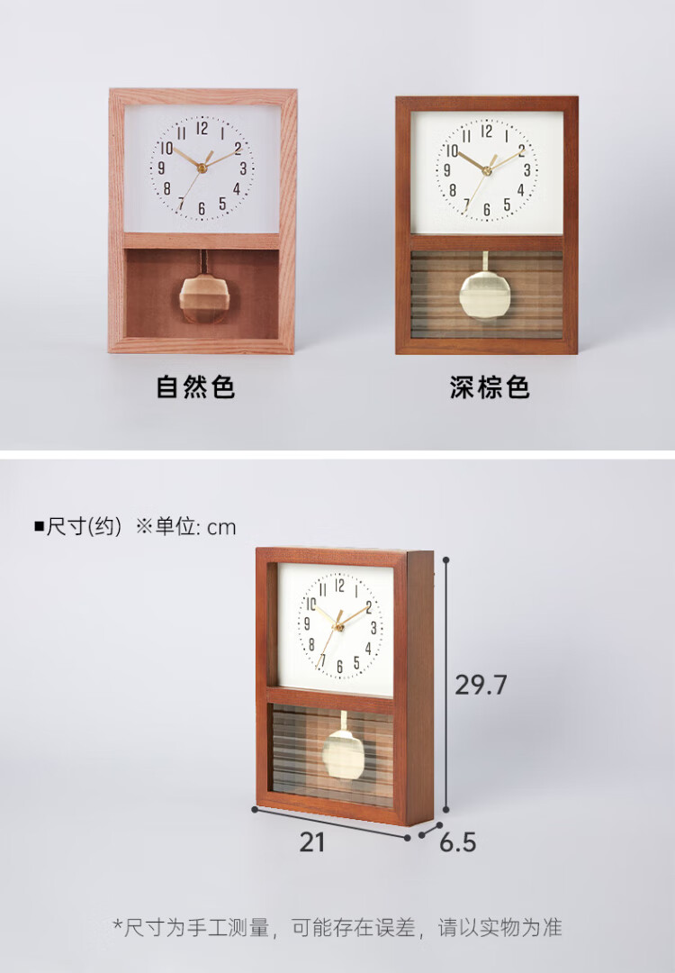 NITORI Yideli Home Furnishing Living Room Desktop Modern Simple Home Bedside Clock Solid Wood Pendulum Clock Dram Natural Color