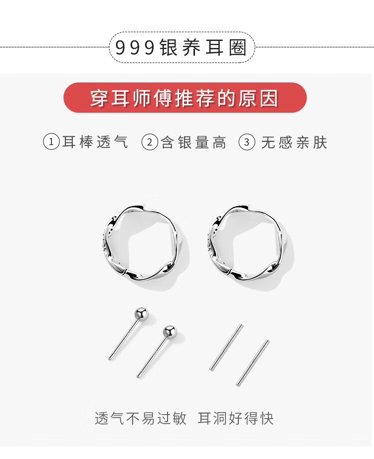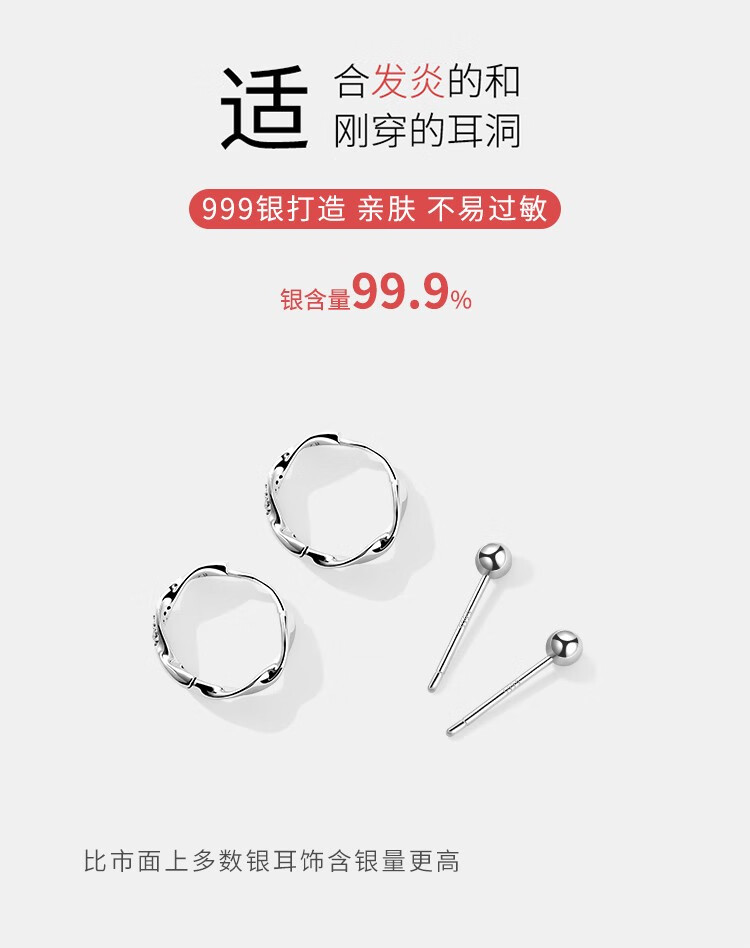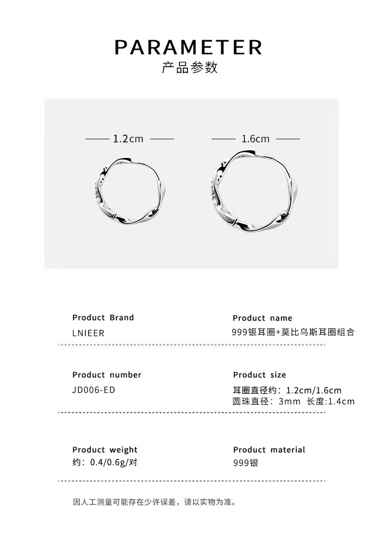 Lnieer 999 silver earrings for women, earrings, earrings, Mobius ear buckles, ear sticks, 2025 new popular earrings, earrings 1.6cm pair + round head ear sticks + ear sticks