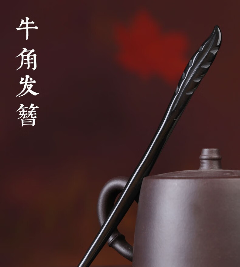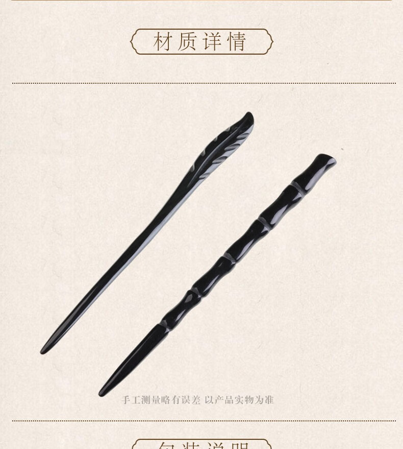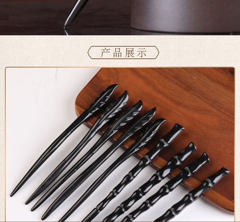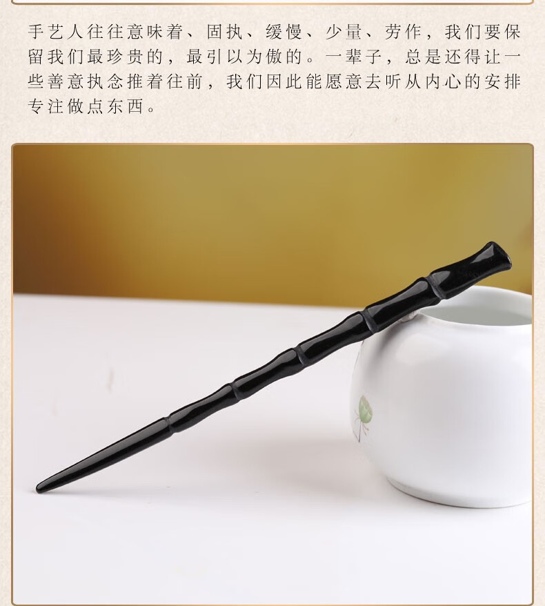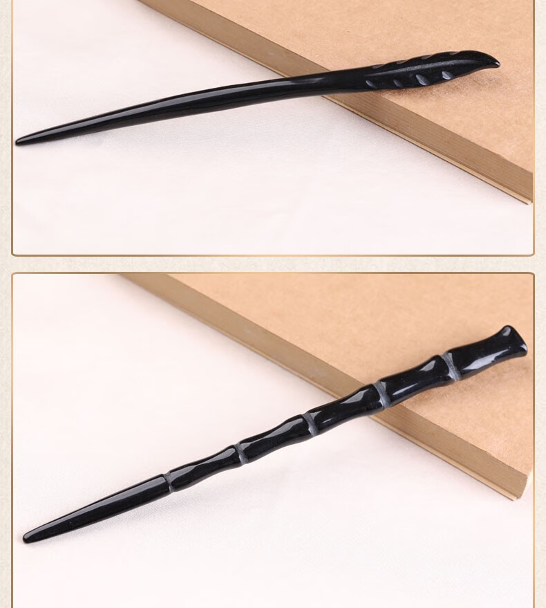 Jiangnan First Hairpin Black Yak Horn Headdress Bamboo Feather Updo Hair Hanfu Simple Hair Accessory Women Bamboo
